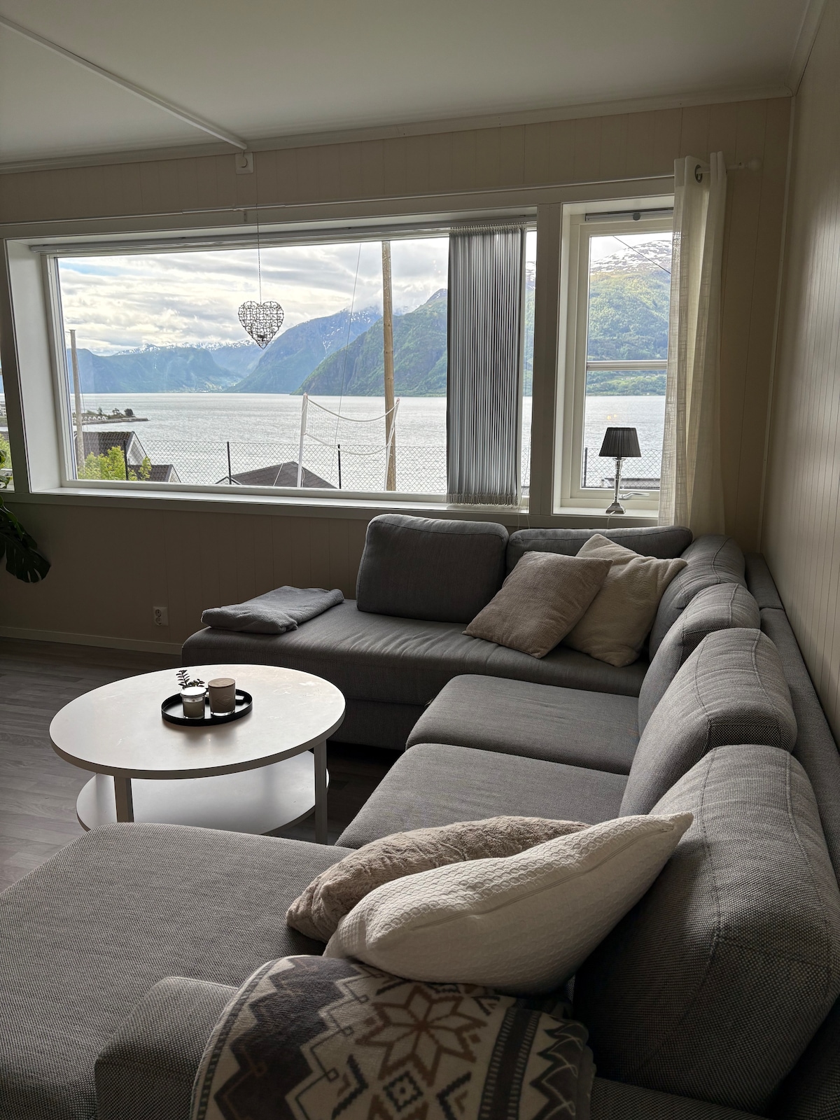 Welcome to a modern top-floor apartment with panoramic views of Lake Hafslovatnet. From the living room, you can enjoy uninterrupted lake views and plenty of natural light. The apartment is part of a house with two units and offers a comfortable and private base for your stay. Sogn Ski Resort is just a 5-minute drive away, making the apartment ideal for both winter skiing and summer hiking. The apartment is bright, functional and well equipped for a comfortable stay..