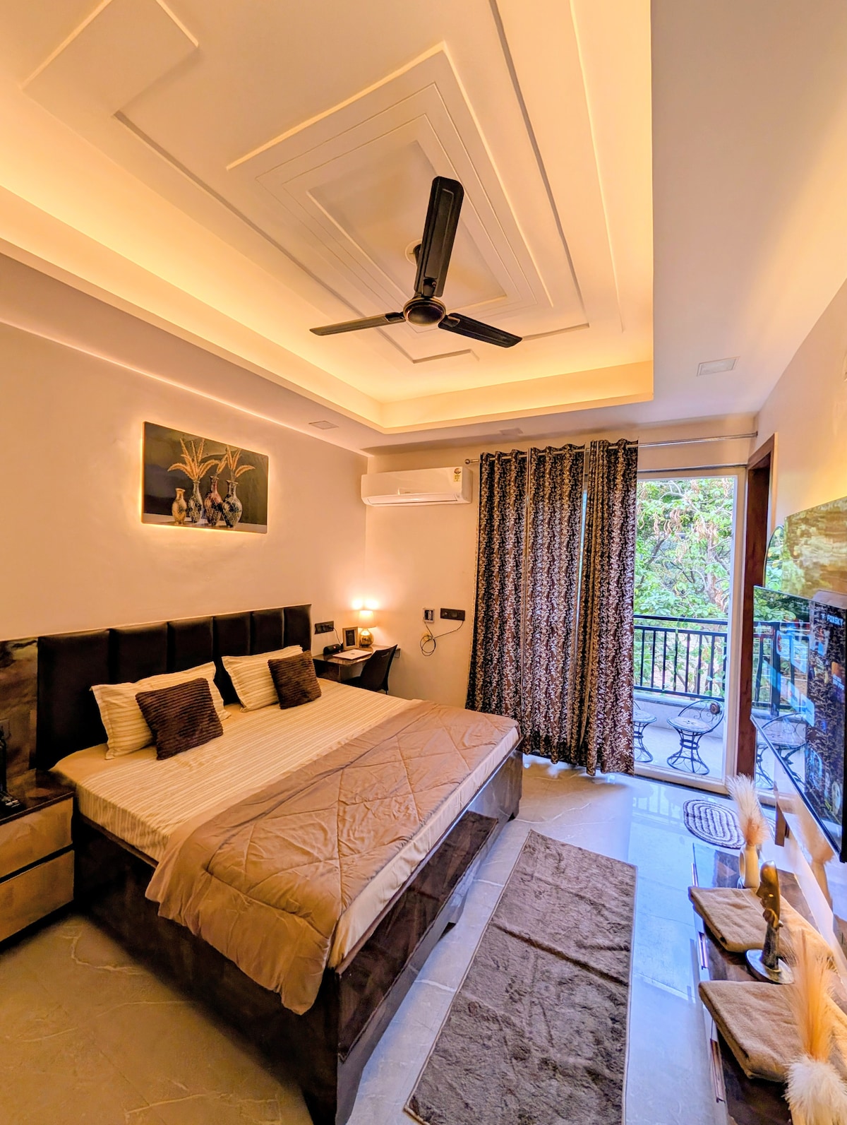 Wake up to breakfast & tea/coffee in this peaceful urban retreat, a space that feels like a warm hug, nestled ~3 mins from Golf Course Road, yet SO peaceful! Includes complementary essentials for your breakfast & tea/ coffee. Every small detail such as scented candles, air diffusers, sound system, mood lighting, personal care items, cooking essentials, board games & decor items are thoughtfully curated to make your stay cozy, comfortable, and unforgettable." š”š