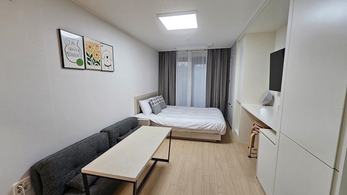 ๐ [Accommodation location and surrounding information] Located in the center of Sokcho, transportation is convenient, and you can enjoy major restaurants and tourist attractions on foot. Fully equipped with cooking utensils, laundry available, up to 4 people can stay, and you can walk to the sea view, seafood market, Jungang Market, Abai Village, and Youth Mall. ๐งบ [Cleanliness and hygiene] All bedding and towels are washed daily and replaced with high-temperature sterilization drying. We provide clean and cozy hotel-style bedding and a pleasant accommodation environment. ๐ [Amenities Information] Essential appliances and cooking utensils such as coffee pot, microwave, washing machine, refrigerator, etc. are fully equipped for simple meals and laundry. On the 1st floor, there is an E-mart 24 (07: 00 ~ 24: 00) convenience store, self-laundry, Yechon Seolleongtang, and Mexicana Chicken. On the second floor, there is a screen golf course and a massage shop for convenient use. ๐ฉโ๐ผ [Host Instructions] At the Sunrise Hotel, carefully prepared by Jini Experience a relaxing and special day in the city.