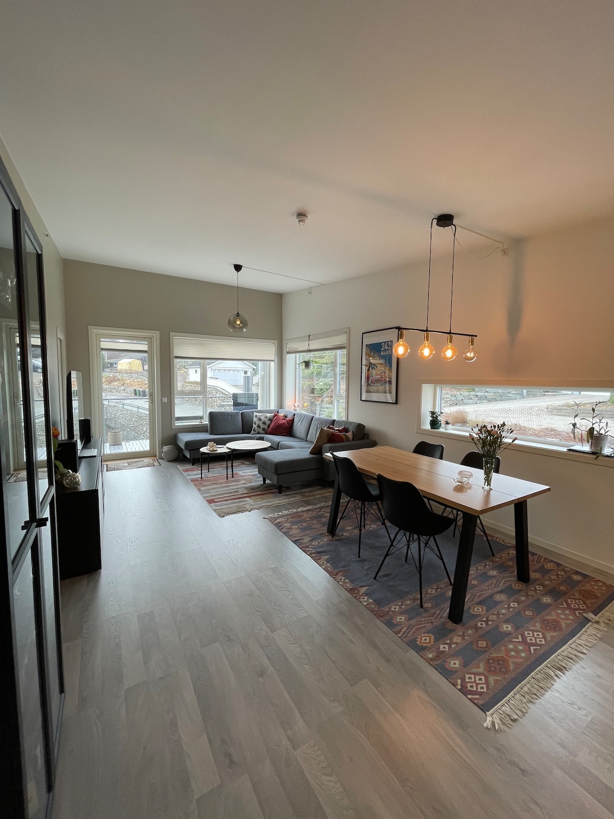 The apartment is on the 5th floor (with elevator) of 70 sqm and right next to Madla amfi shopping center. There is a lovely glazed terrace of 19 sqm. There are also nice hiking areas and close to Møllebukta. There is parking in front of the block as well as good bus connection to Stavanger city center which is about 4 km. The apartment was renovated 2 years ago with painting and sanding of parquet in the living room, hallway and one simple bedroom. There is also a double. Rented out when there is an oil fair from 26 to 29 Aug. Ok from Aug. 25.