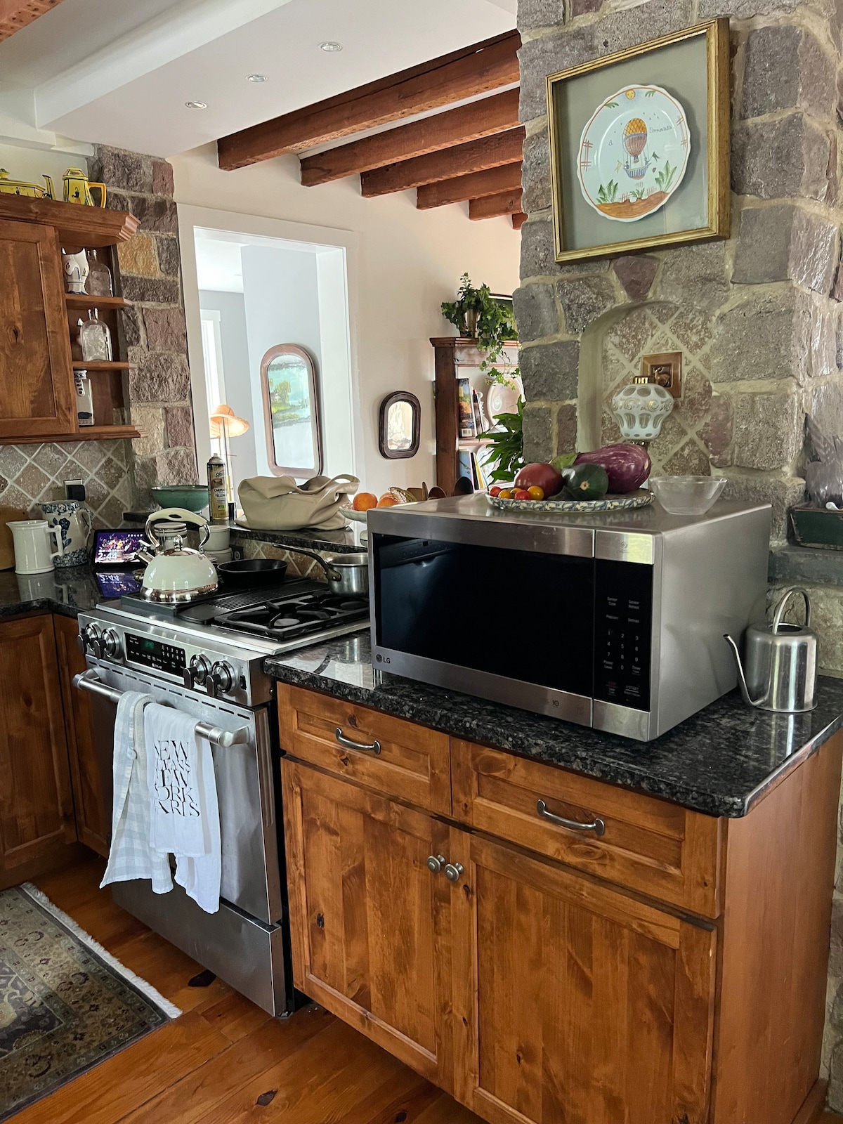 Private, tranquil historic Stone Cottage, situated on 11 woody acres of a colonial Buckingham Hills farm estate, cir 1793 minutes from Peddlers Village, New Hope, Lambertville, Doylestown. Cozy, romantic decorated with unique antiques and comfortable furnishings. Relax by an oversized wood burning fireplace, enjoy a large screen smart TV, explore the property & stargaze by an outdoor fire pit! Retrieve to the 2nd floor spacious master bedroom with an extra plush king size orthopedic mattress.