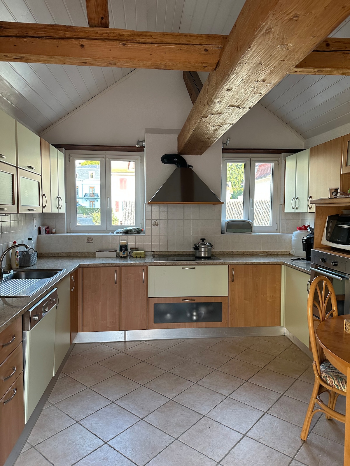 Huus_Wensing, centrally located in the Mittelland/Oberaargau, at the foot of the Jura, overlooking the Alps. The cities of Bern, Basel, Lucerne, Zurich and the Alps can be reached within an hour, the baroque town of Solothurn is 15 minutes away. Three bedrooms and two bathrooms are available. The living room has a Swedish stove. The garden has a barbecue and seating area.