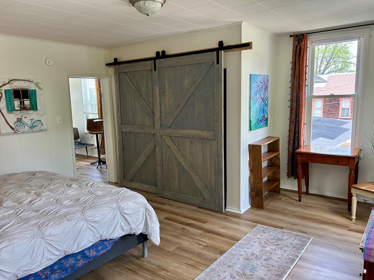 Relax with family, friends, or enjoy a solo retreat at this peaceful place to stay in the country. Chestnut House was built in the early 1940s, with Wormy Chestnut wood everywhere! It is a unique home, with an apartment built over a garage / wood working shop.. then connected to the main house later. This space available to rent is separate and fully functional from the main house where we live. Enjoy 2 bedrooms, 1 bathroom, full kitchen and living area.. along with the large outdoors!