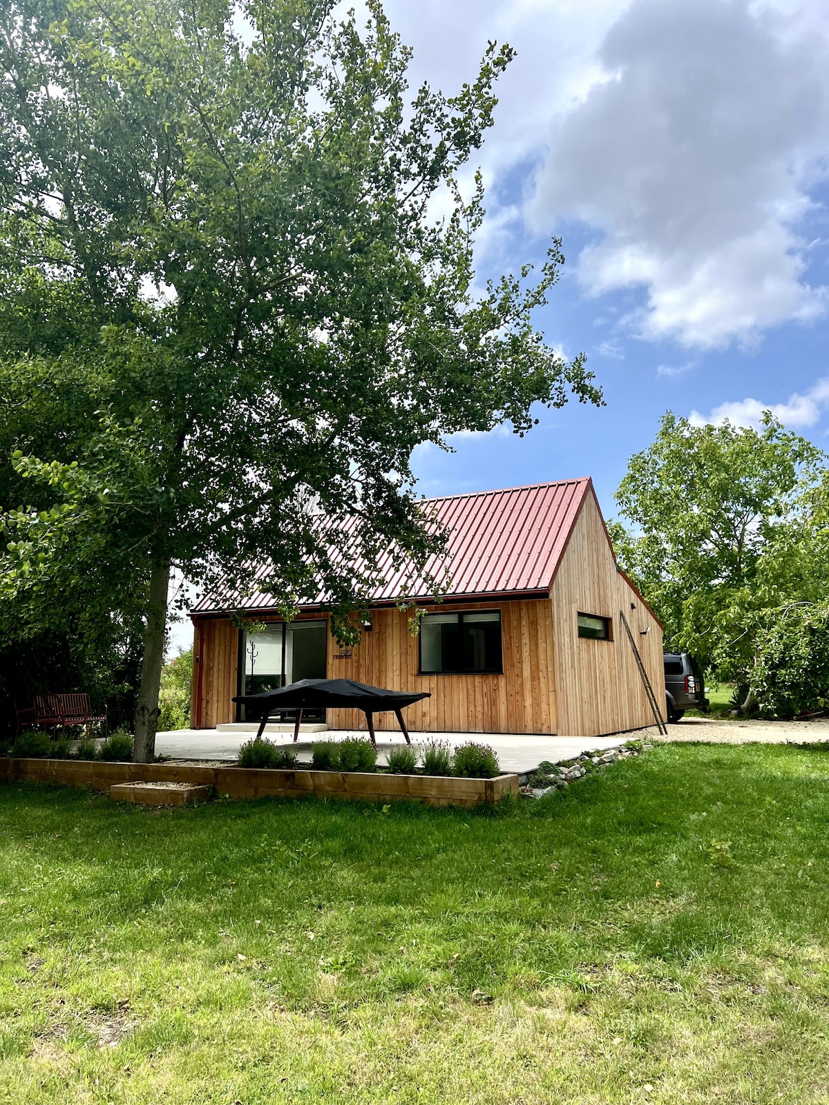 A stylish one-bedroom barn adjacent to a stream.