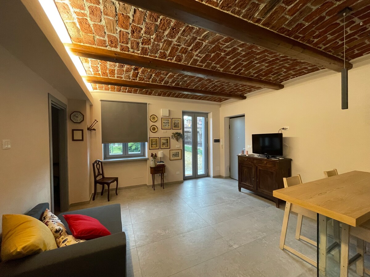 Brand new studio apartment in a historic building, centrally located in the charming old town of Carmagnola. Bright and comfortable. Access to the inner courtyard is from the traditional arcades. Quiet and peaceful, on the second floor it offers a balcony overlooking the rooftops of the center. A few kilometers from Turin, Alba, Asti and Bra. Five minutes from the train station. Free public parking is available 50 meters away. Wi-Fi connection.