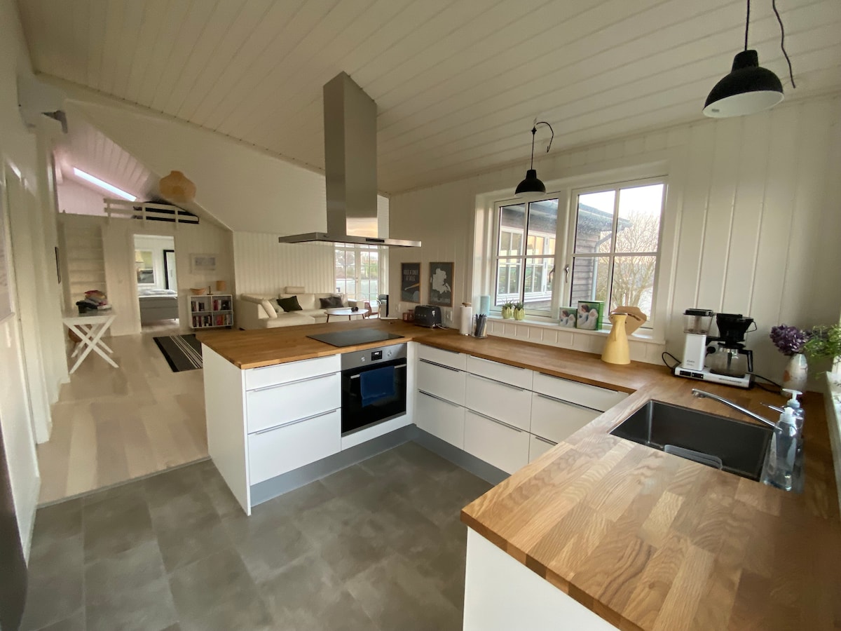 Spacious, beautiful and brand new cottage located 100 meters from child-friendly beach for rent. There are 3 bedrooms as well as a loft, 2 bathrooms, utility room and large kitchen-dining room . The house has a lovely living room with tilt ceilings. Large wooden terrace around the house, offering the opportunity to enjoy the view over the bay or across Broagerland. The holiday home area is located on Broagerland, in the bay between Broager and Sønderborg. The area offers beautiful trips along the gendarme trail and castle and forest in Gråsten.