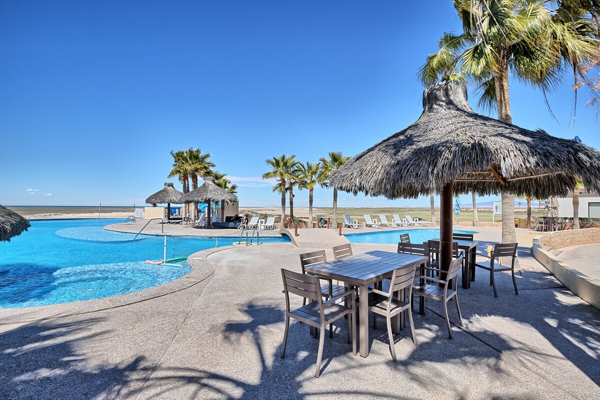 Experience Rocky Point at its best in this beachfront rental with heated infinity pools, spas, sauna and beachside fire pits, perfect to get away from the crowd. Enjoy the breathtaking view of Miramar Beach from the large private patios, head to the oceanview gym or play a little tennis in the morning, enjoy a drink by the myriad of pools, cabanas, and seaside loungers by day, and prepare your favorite dishes on the gas grills in the evening.