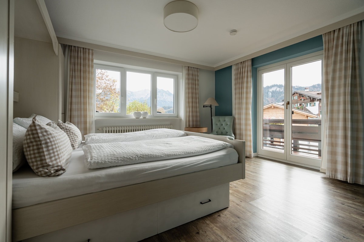 pure.erholung - die Seele baumeln lassen, frische Bergluft einatmen, die Natur unter den Füßen spüren, einfach sein! Das helle Apartment bietet von zwei Balkonen spektakuläre Aussichten auf die Alpen sowie das Schloß Neuschwanstein. Es liegt direkt am Forggensee (Stausee). The bright apartment is about 100 sq.m. in size. The two generously sized balconies offer breathtaking views of the Alps as well as of the famous castle “Neuschwanstein”. It´s located right next to the dam Forggensee.