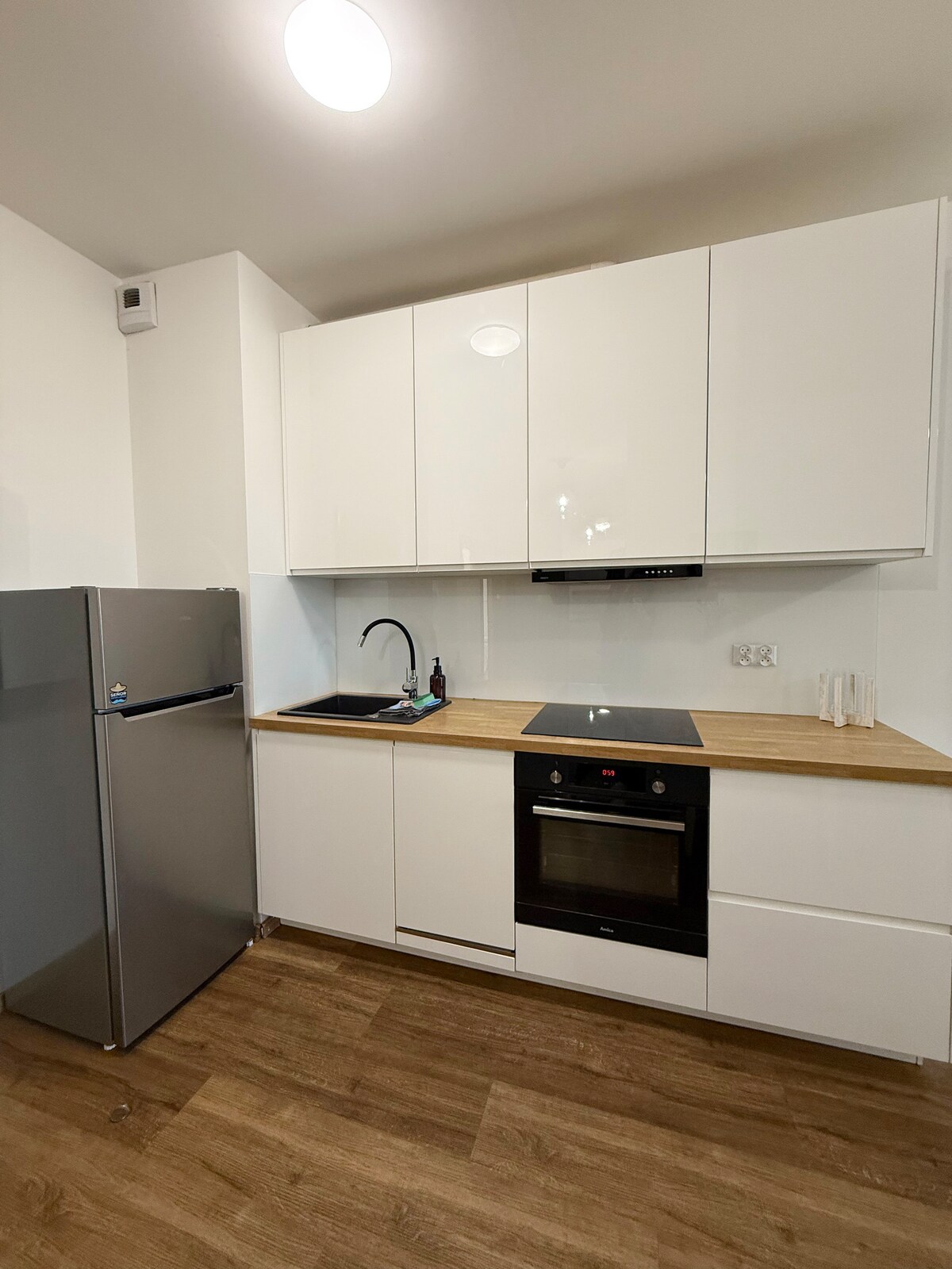 Welcome to a modern, very cozy apartment in Gdańsk on Garnizon. The apartment consists of a living room, kitchenette, separate bedroom, bathroom and balcony overlooking the courtyard. There are numerous restaurants, entertainment venues, shops and much more in the area. We provide a bedroom with a double bed 140/200, cable TV, Wi-Fi, washing machine, foldable clothes dryer, dishwasher, equipped kitchenette, ironing board and iron.