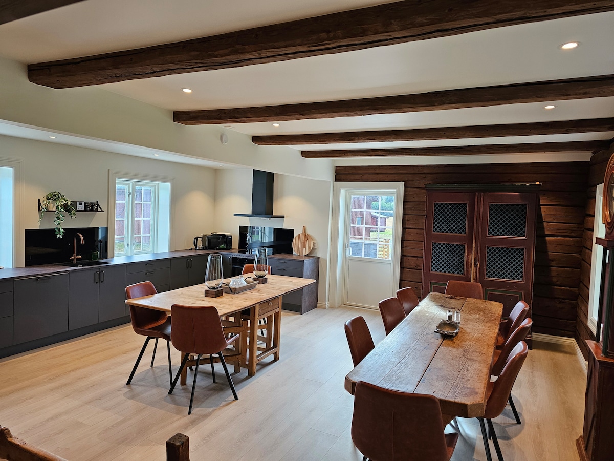 Live in a unique piece of Røros history, in a 120 sqm timber house where a hundred years of history are combined with modern comfort and amenities. Bed linen, towels, firewood and cleaning are included for the easiest possible stay. Wooden walls, stone floors and a large fireplace create a very special atmosphere and the house has two bedrooms, a living room, two small bathrooms and a fully equipped kitchen with fireplace, stove, dishwasher and refrigerator.