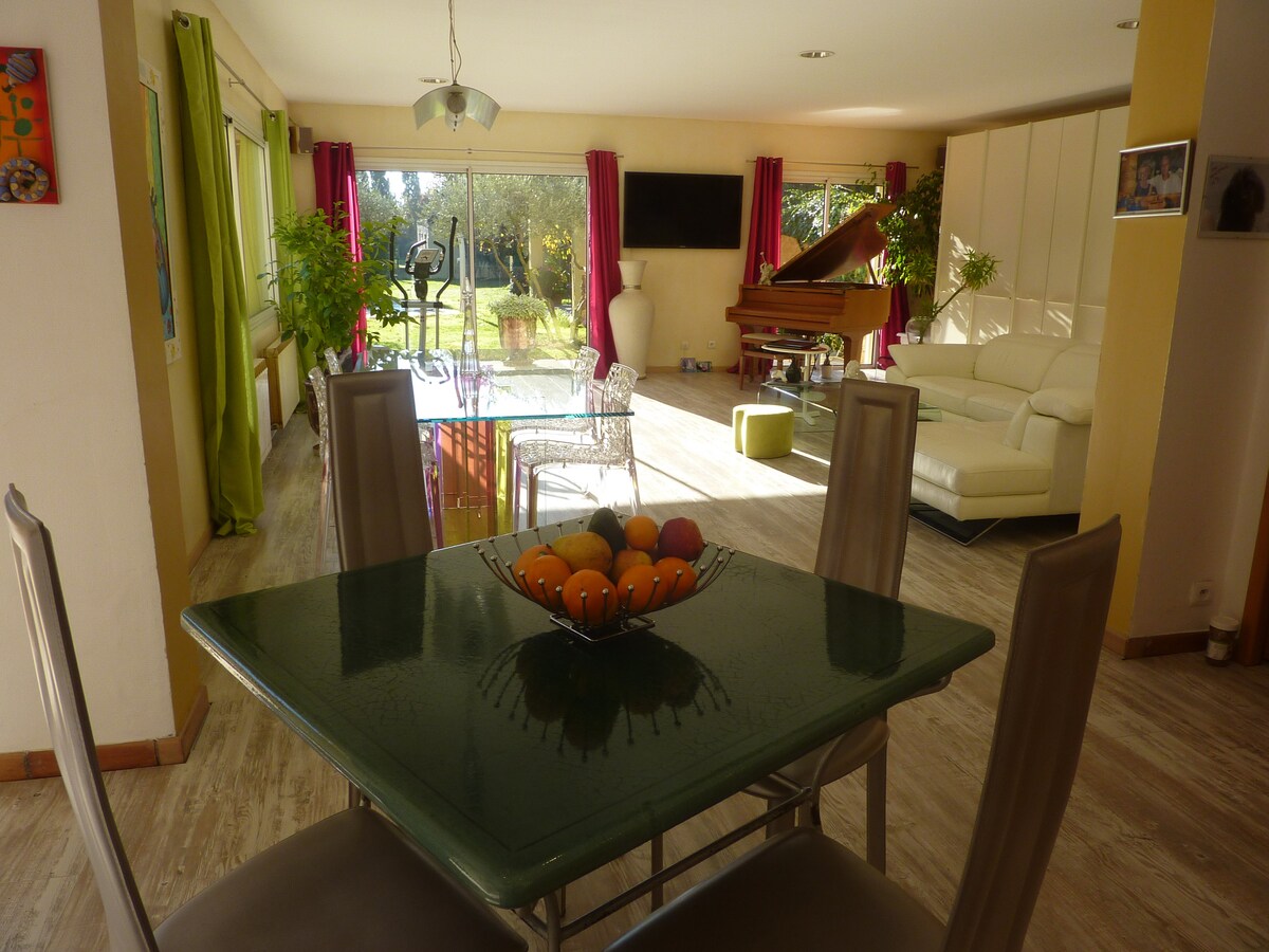 "La Maison aux Oliviers" is a small charming farmhouse of 90 m2, air-conditioned, independent and located on an old olive grove, quiet in a landscaped garden offering a beautiful private heated and secure pool. Its large awning offers the possibility of living outside sheltered from the sun and wind (mistral). Close to the historic center, local market and shops (walking distance), it is perfectly equipped for remote work (high-speed fiber)