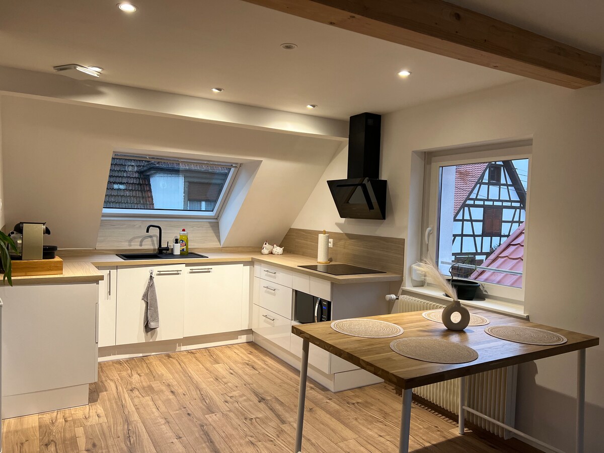 Beautiful apartment, very comfortable. Enjoy a fully equipped, new and well-maintained home. A parking space is located in front of the building. Check-in is autonomous. The accommodation is located in the heart of a pottery village, close to the German border, the Outlet center in Roppenheim, and Strasbourg. Restaurants, bakeries and shops are steps away from the apartment. Enjoy your stay to visit our beautiful Alsatian region and its surroundings.