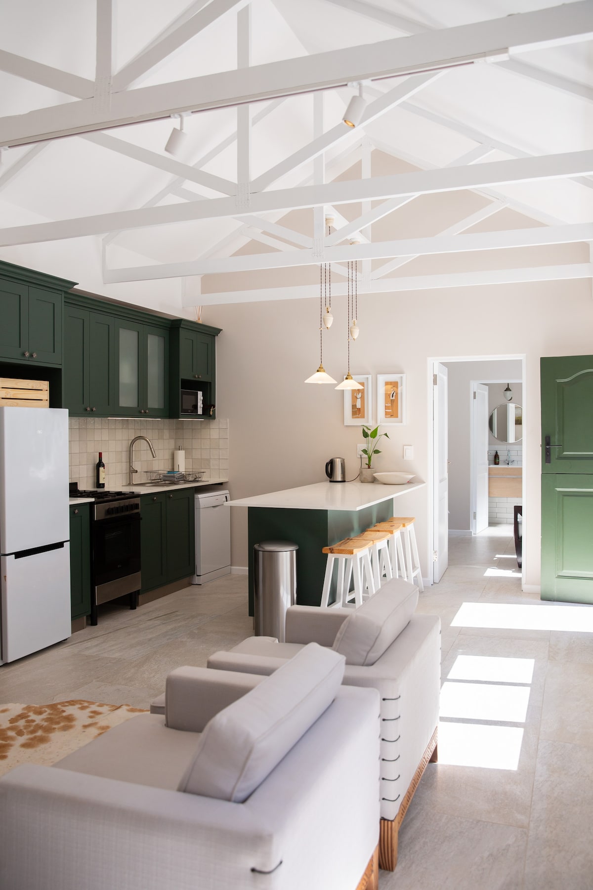 Welcome to your Garden Cottage nestled in the heart of Paarl, within the beautiful landscapes of the South African Cape Winelands. Our newly renovate cottage is situated in the garden of an old Cape Dutch manor house. The cottage boasts two inviting bedrooms, both with on-suite bathrooms and equipped with air conditioning. The open plan kitchen and living room are fully equipped. The cottage has access to the garden and the swimming pool.