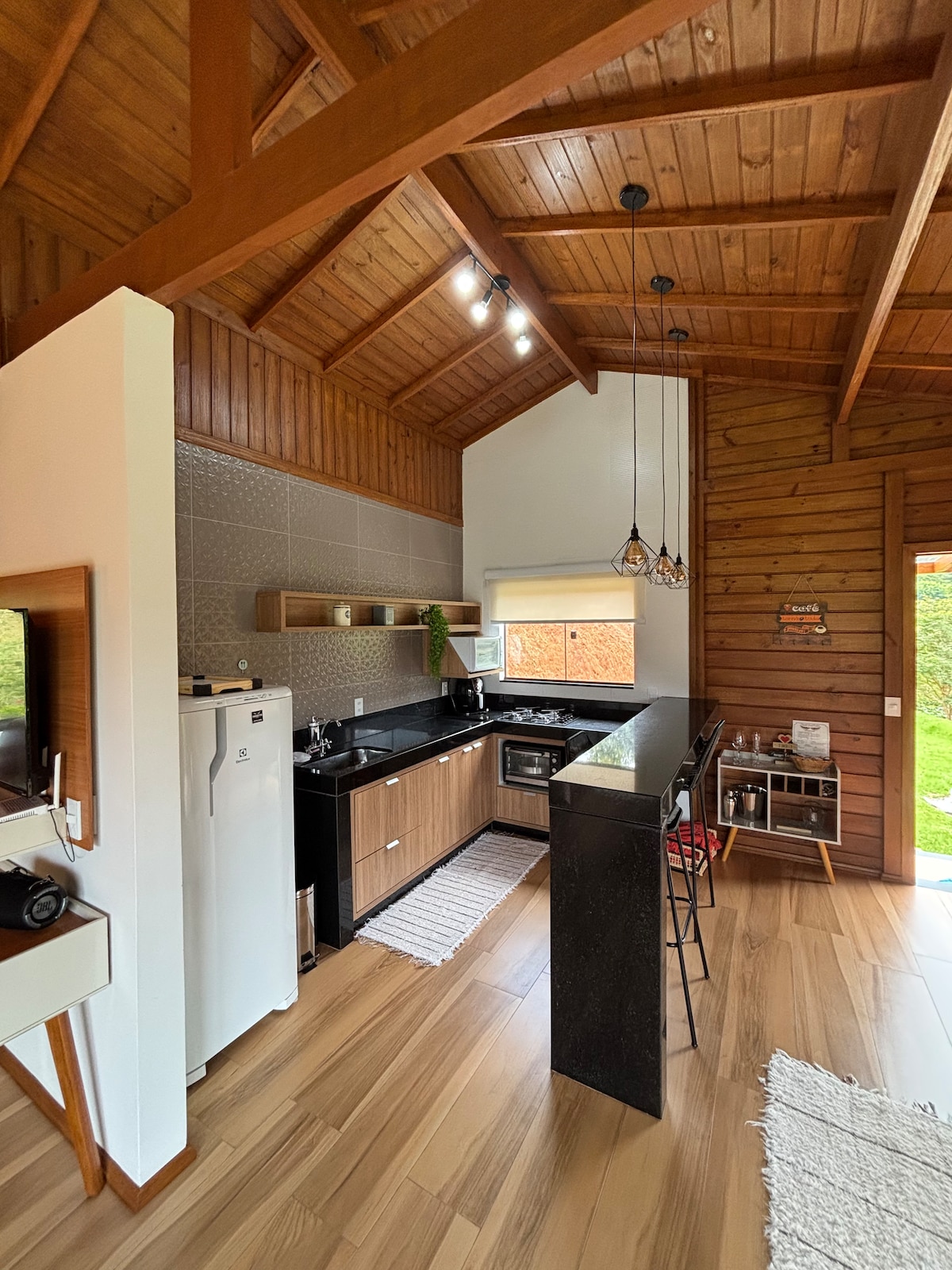 Private and sophisticated chalet in the midst of nature in the heart of the São Roque Wine Route. Relax in the heated whirlpool spa, the heated infinity pool or the steam sauna. At night, light the fireplace and prepare pizzas in the chalet's oven — we offer complimentary handmade, naturally fermented, pre-baked and super practical doughs to finish. A complete space to slow down and enjoy special moments together.