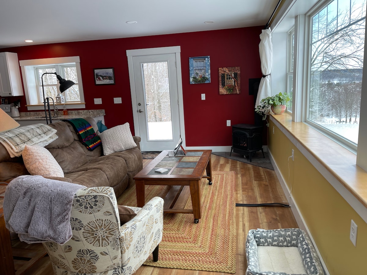 Our newly built cozy and relaxing guest cottage is located in New Haven . It has stunning views and gorgeous sunsets!! Located just seven miles from Middlebury ,Vergennes and Bristol . All of which have great shops and restaurants! Close to many local attractions including ,Woodchuck Cider house, Lincoln Peak Vineyard, Ski areas, Hiking , rivers, lakes, restaurants and much more! Our goal was to provide guests with a home away from home! We feel our cottage offers that and much more.