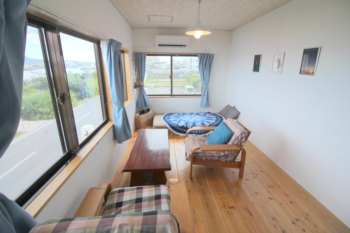 Thank you for thinking about my room♪ 「Beahi side hotel YAMORIYANONIKAI] Nago City is a city where people and nature are beautiful. A beautiful beach spreads in front of the house. I restored my old house for over a year and made a handmade warm room. The area is 80 m² and is the perfect place to see the beautiful setting sun from the window of the room. If you have any questions, please feel free to contact us. Kengo