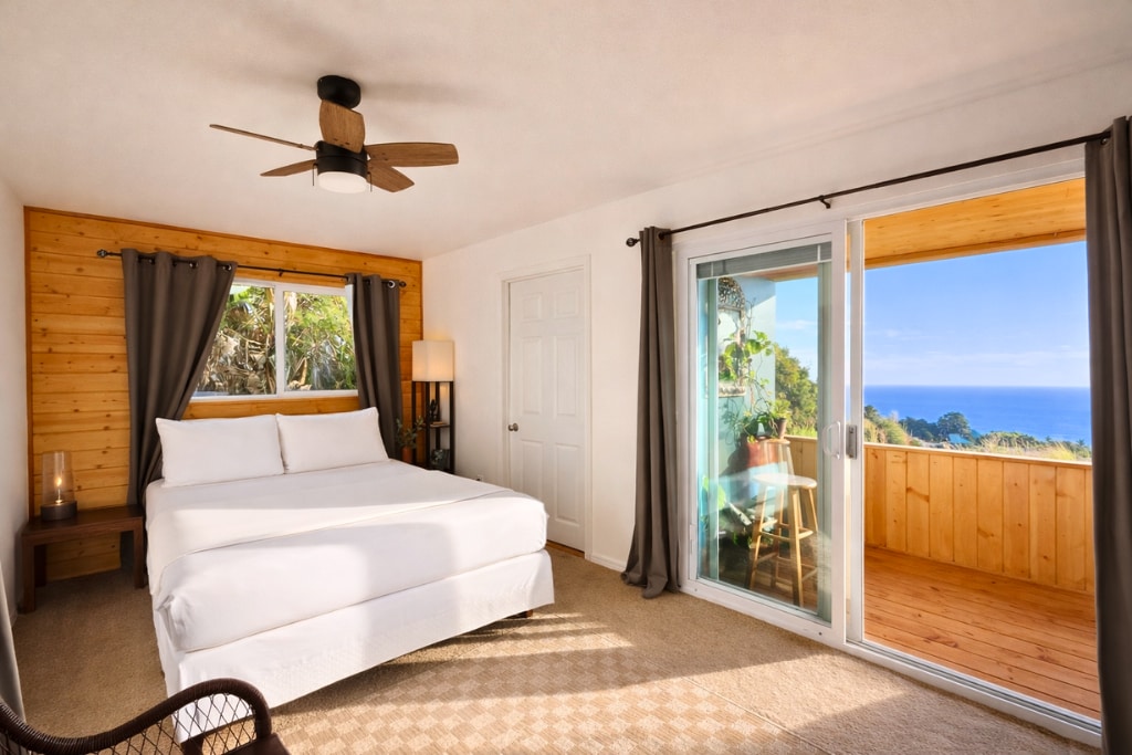In a private retreat, this studio offers an idyllic escape with stunning ocean views. A full kitchen and bathroom with a queen-size bed for couples and additional small bed for a child or a small adult. This space is perfect for a romantic getaway or family vacation. Explore the one mile private rainforest trail, unwind in the pool, or experience the unique steam vent hot tubs. The owner resides on the 20-acre property to address any needs that may arise during your stay. TA-008-365-8240-01