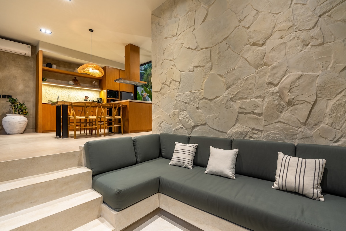 A modern two-bedroom private villa in Bingin, set within the Palmera Bingin villa complex and designed for guests who value comfort, privacy, and a well-located base near beaches, surf spots, cafés, and dining destinations. With a private pool, sunken living room, and semi-outdoor spaces, this villa suits couples or friends looking to enjoy Bingin’s relaxed coastal lifestyle without feeling far from the action. What to expect: - A semi-outdoor lounge, along with a tropical outdoor shower