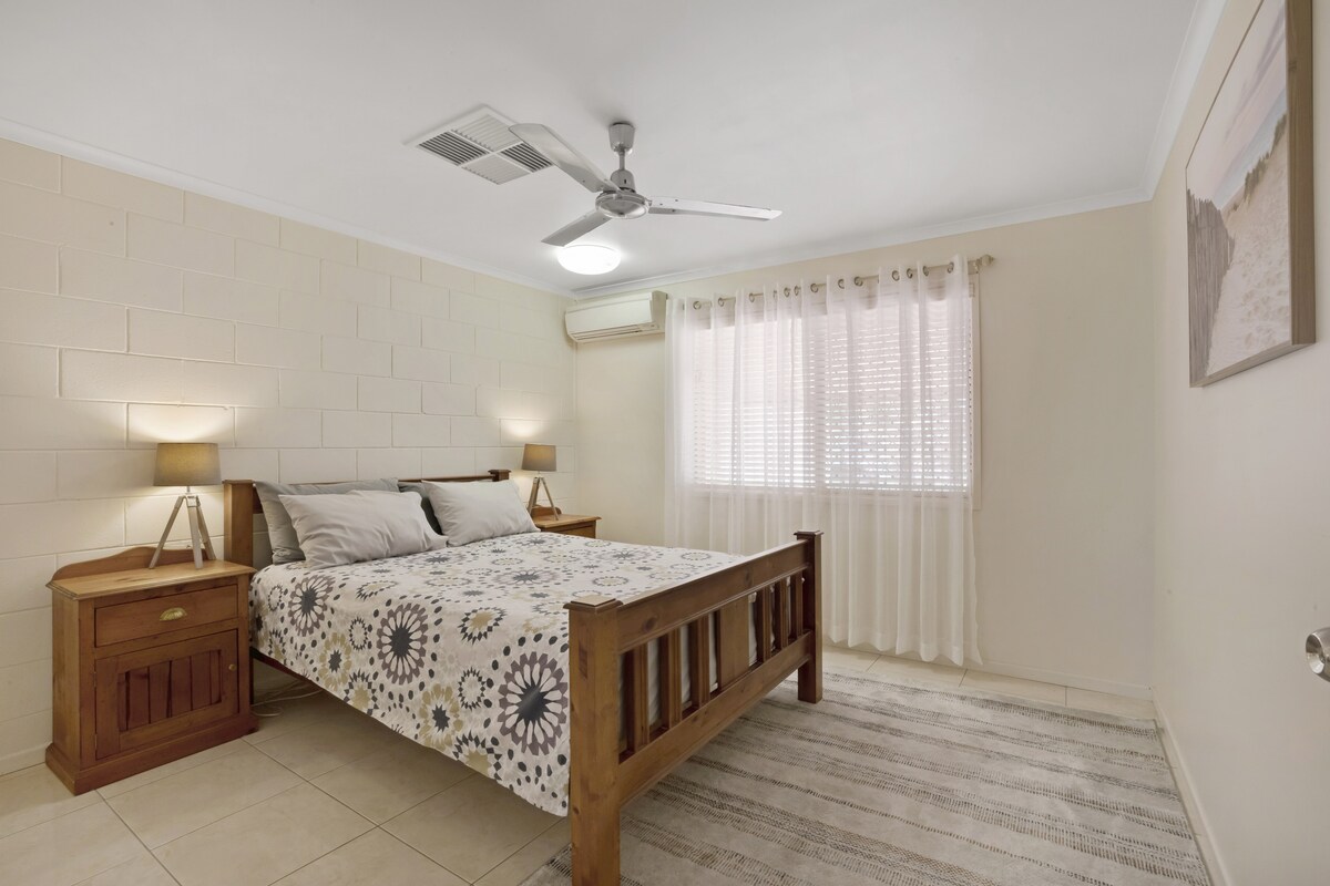 Keep it simple at this peaceful and centrally located home on the main street of North Mackay. Step out the gate to the beautiful Gooseponds walk, which will take you past a skate park, exercise stations, playgrounds and the community pool , Taverns 500m either way from the front door, convenience/takeaway store across the street. It's all there. The home is fully equipped with a cleared clean space for you to enjoy. Relax on the back deck lounge or enjoy dinner outside on the bar style setting.