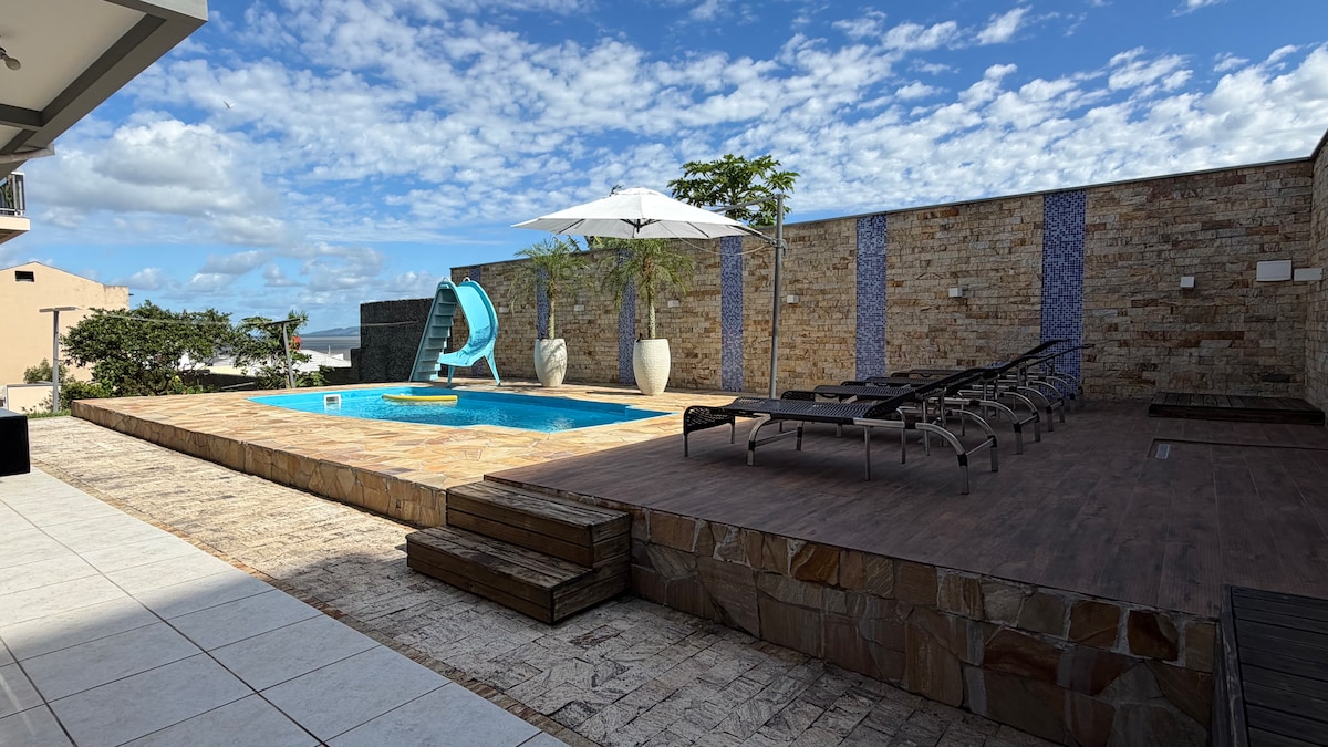 quiet, well-ventilated environment with a view, easy access to any point in the city and neighboring cities, fumigated, now with a microwave and split air-conditioning. The private pool for guests is one of the most praised points