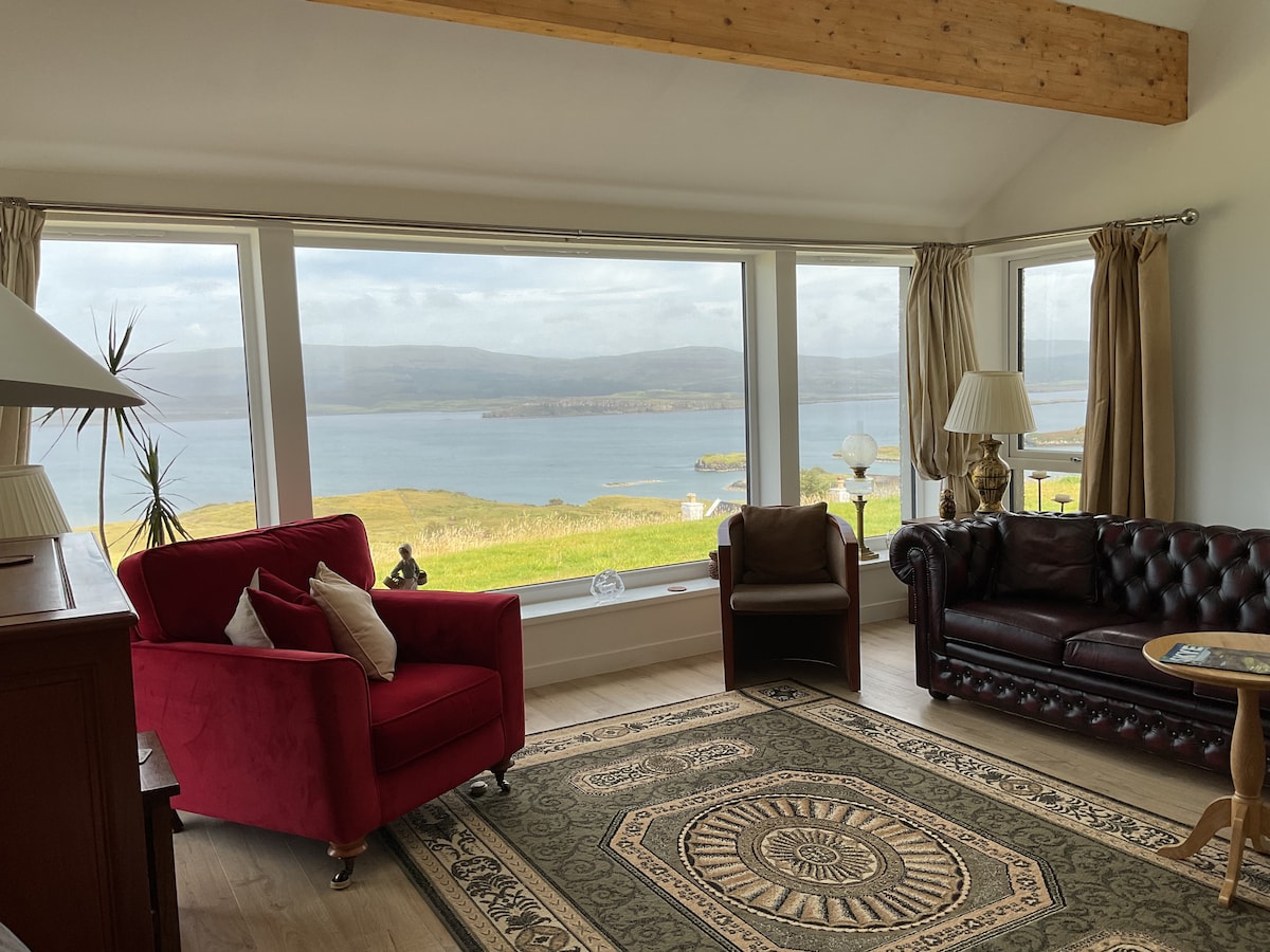 Sitting above Loch Harport enjoying the view. I designed and built the house myself which is why it has a personal feel, its spacious and at the same time cosy. just a few minutes drive from Carbost with the "Old Inn" and the famous Talisker distillery to explore.