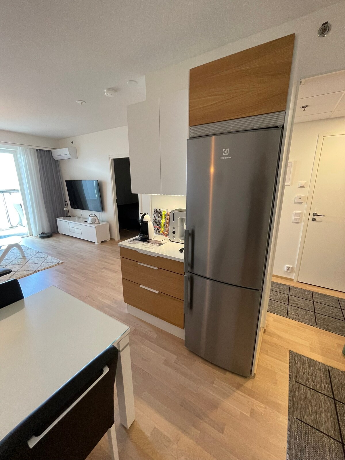 This new wooden apartment is for you who are looking for a quiet and high-quality apartment. Check-in is effortless with a key box. The apartment has all the comforts of today, the windows flood in light and the atmosphere is created by wide plank floors and high room heights. The quality of the apartment is generally high. The driver gets the car in his own private parking space. The apartment has its own terrace, so you can enjoy your morning coffee outside. This apartment guarantees a great night's sleep!
