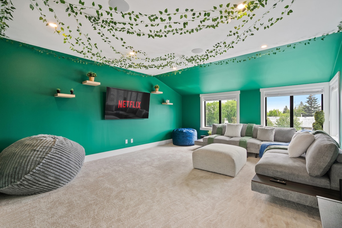 Multiple bedrooms w/ comfortable beds, fresh, plush linens Sleeps up to 10 guests Fully stocked kitchen with modern appliances, cookware & coffee setup Fast Wi-Fi and space to work/stream 🧖 Private sauna 🐶 Fully fenced backyard 🍔 Large deck with BBQ & outdoor seating 🚗 Free parking 🔑 Self check-in w/ hassle-free smart lock Near: Grocery stores, restaurants & cafés Steps away from park, largest VIP theater, YMCA waterpark, skating rinks, + gym Major routes for easy access around Calgary