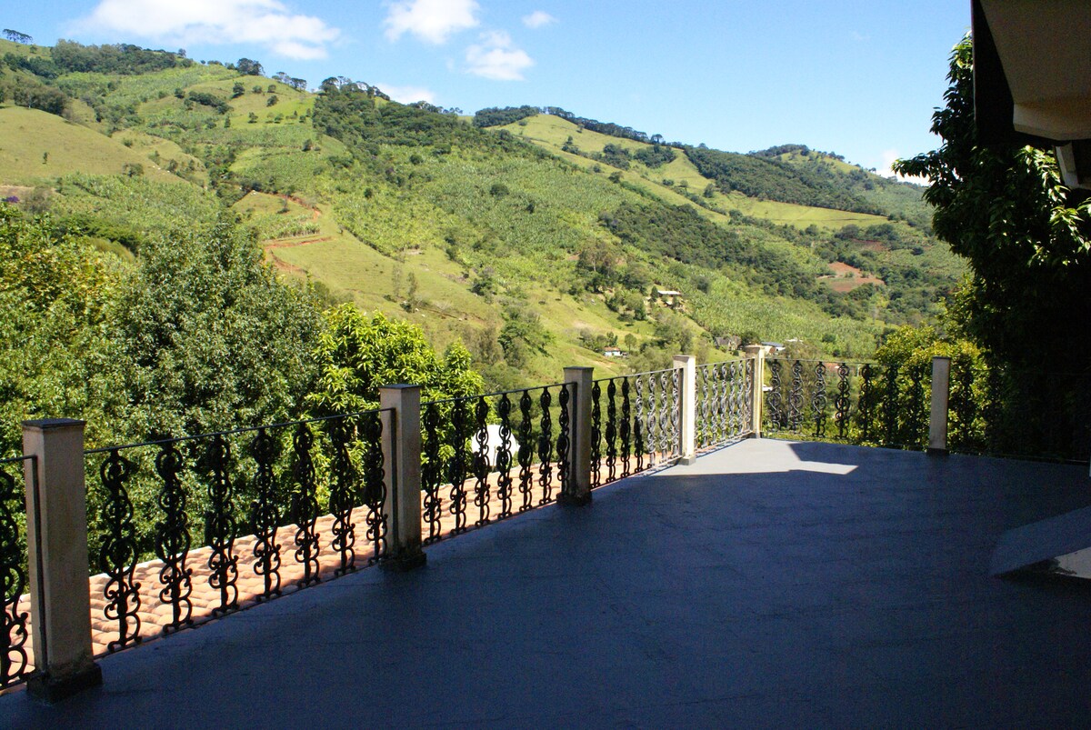 'Casinha,' affectionately called by us. Comfortable country house without losing its originality. Surrounded by nature with a lovely view of a mountain valley and the sound of a small stream in the background. You can enjoy the fireplace, wood-burning stove and a charming balcony frequented by hummingbirds. The lawn surrounding the house is perfect for sunbathing, enjoying the starry sky, having lunches integrated with nature or simply relaxing on the sun loungers.