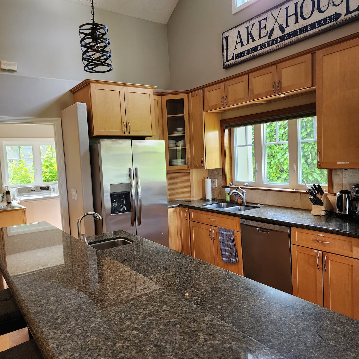 Our home has been described as being a home away from home with a fully stocked kitchen and coffee bar. This kitchen is for you if you like to cook and save on food expenses We offer an amazing Coffee Bar with pods and ground coffee. Keurig system (pot & pods), Coffee Press. Various teas, hot chocolate, Apple Cider, Liquid creamers and more *Waffle maker, Mix and Toppings *Snacks *Washer & Dryer *Grill & Picnic Bench on Patio *Swing set *EV Charger Level 2 *Fenced yard/gate