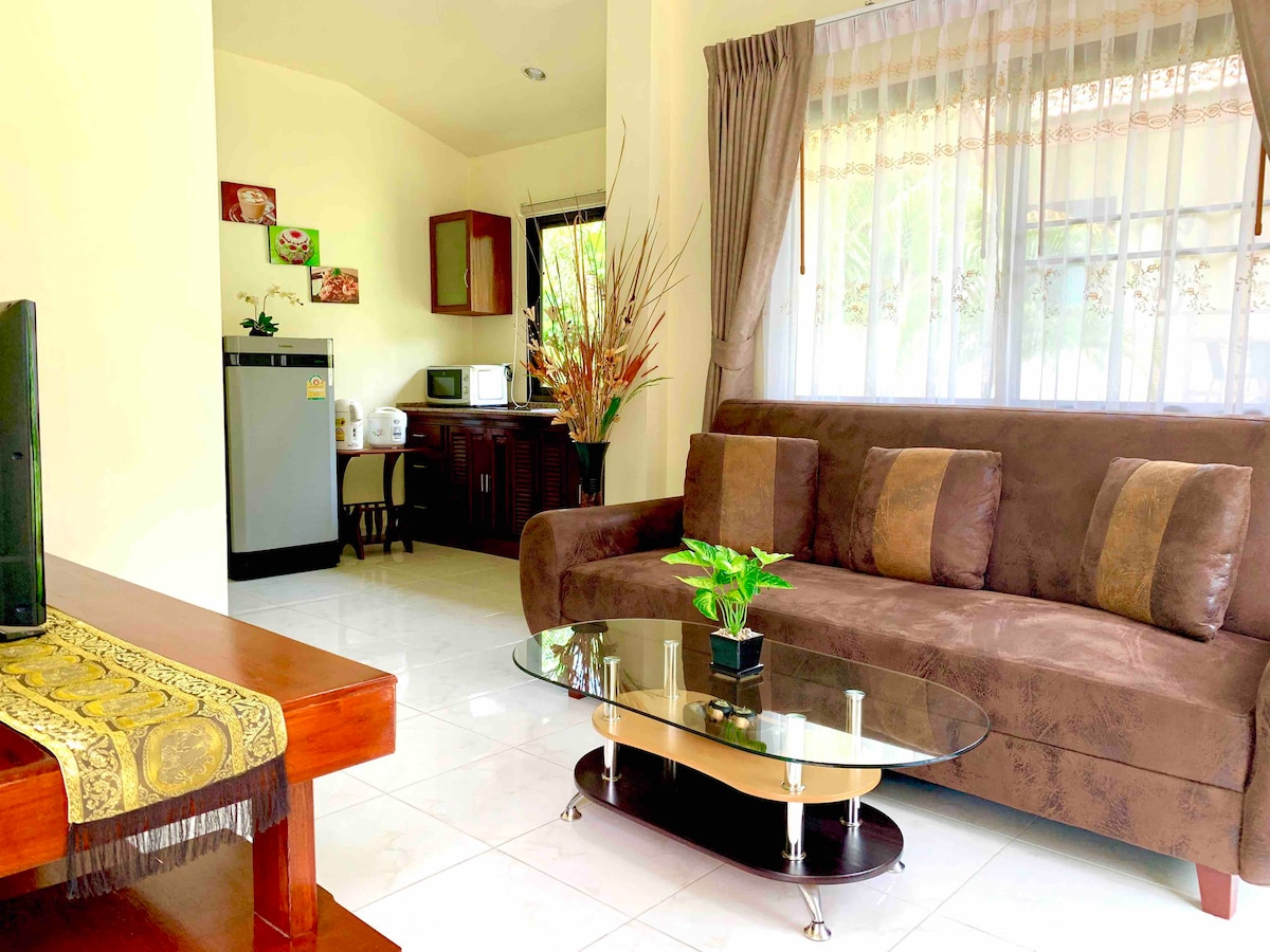 This is a large villa that can accommodate up to 11 guests. It’s located right in the heart of Ao Nang, very convenient and less than 5 minutes from the beach. Our villa has been operating for over 10 years. It’s not brand new, but we maintain and take care of it constantly. That’s why you can book it at a great price compared to other villas in the same area. (We want to be honest — the house is spacious, maybe not the newest, but it’s clean and well-maintained.)