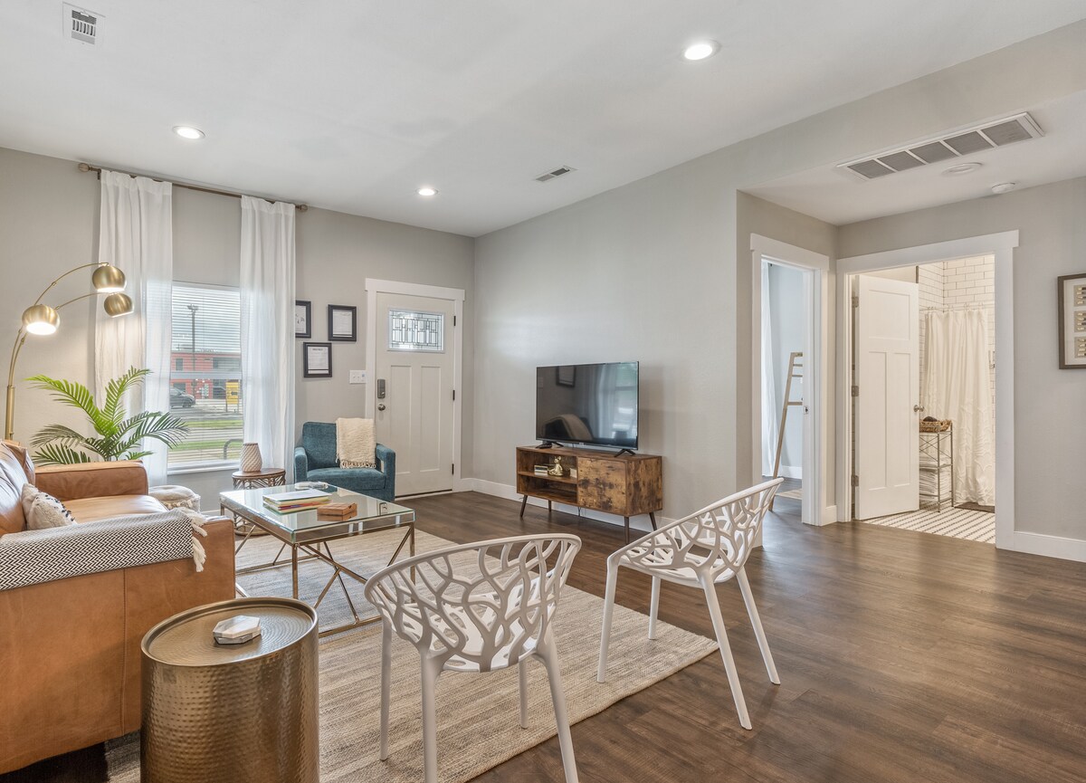 Unwind and refresh in this calm, stylish space. Upscale, minimalist design complete with a pristine chefs kitchen. High end (Cozy Earth) linens throughout, truly a boutique hotel experience with tranquil outdoors spaces! Idyllic mid-town location, nestled into charming Florence Park with mature trees and sidewalks. Easy access to Cherry Street (2 mins), Utica Square (3 mins), Tulsa Fairground and Expo Center (4 mins), Downtown/Art's District (6 mins), and Riverside/Gathering Place (8 mins).