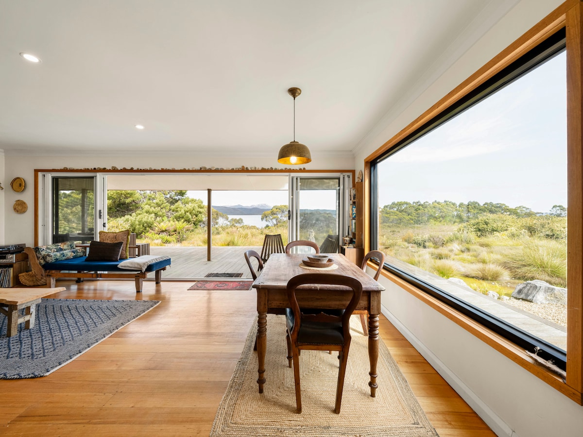 A charming hobby farm just 10 minutes from Strahan's center. Our delightful menagerie includes sheep, alpacas, chickens, and a friendly goat. At night, the property comes alive with wallabies, rabbits, bandicoots, and possums. Your stay promises warmth, cleanliness, and comfort, as attested by our glowing reviews. We're dedicated to enhancing your experience, so feel free to inquire. Extended stays and direct bookings are warmly welcomed.