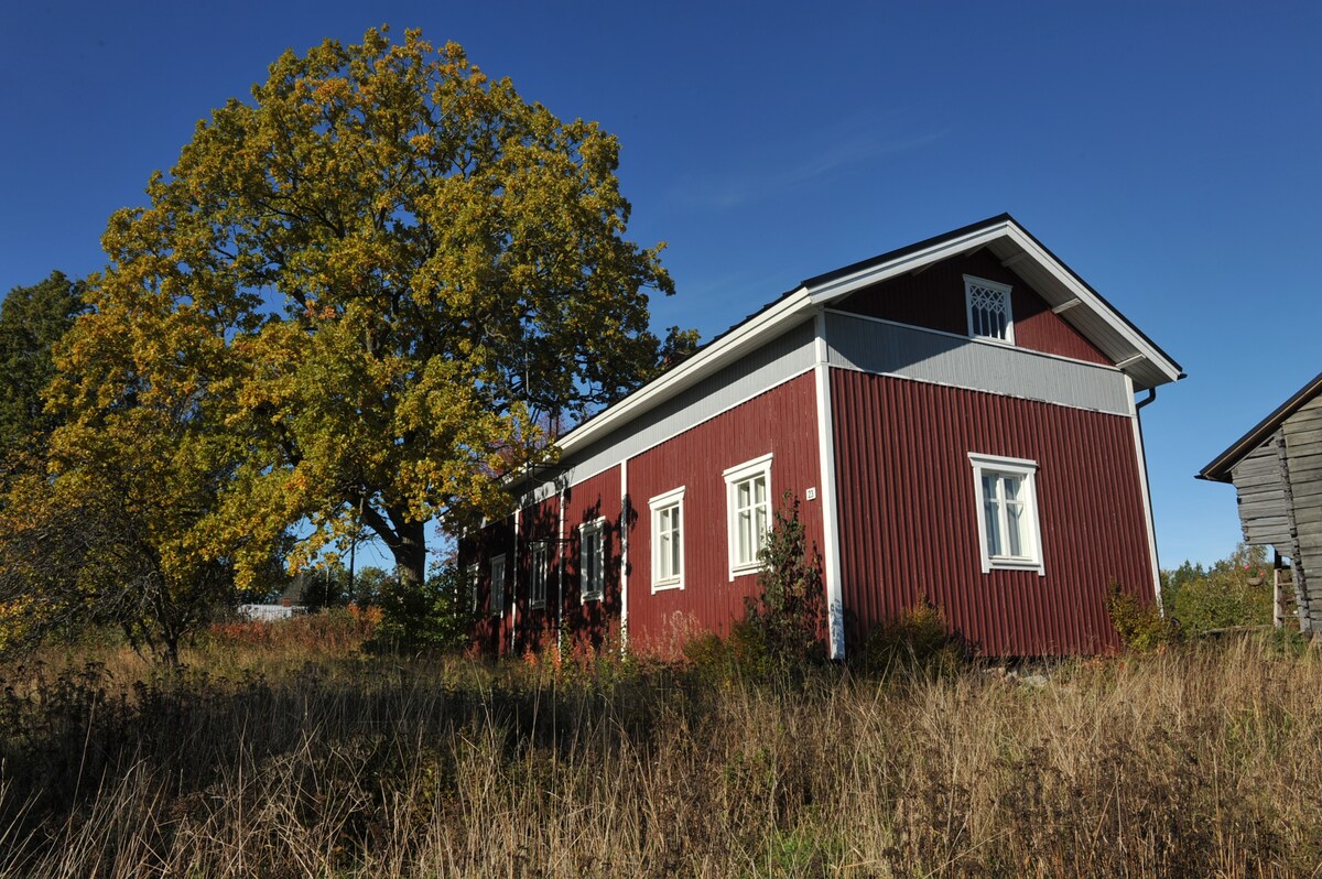 The main building of the old farmhouse is located in a quiet rural environment, with excellent transport connections. The Helsinki-Turku highway is 5 km away and you can go on a variety of cycling and outdoor walks directly from the yard. The apartment has been completely renovated. The courtyard of the country house is idyllic. On the covered terrace, you can have breakfast in peace and in rainy weather and well into the autumn you can sit and enjoy the surrounding countryside. Linen and towel sets are included in the price of the stay.