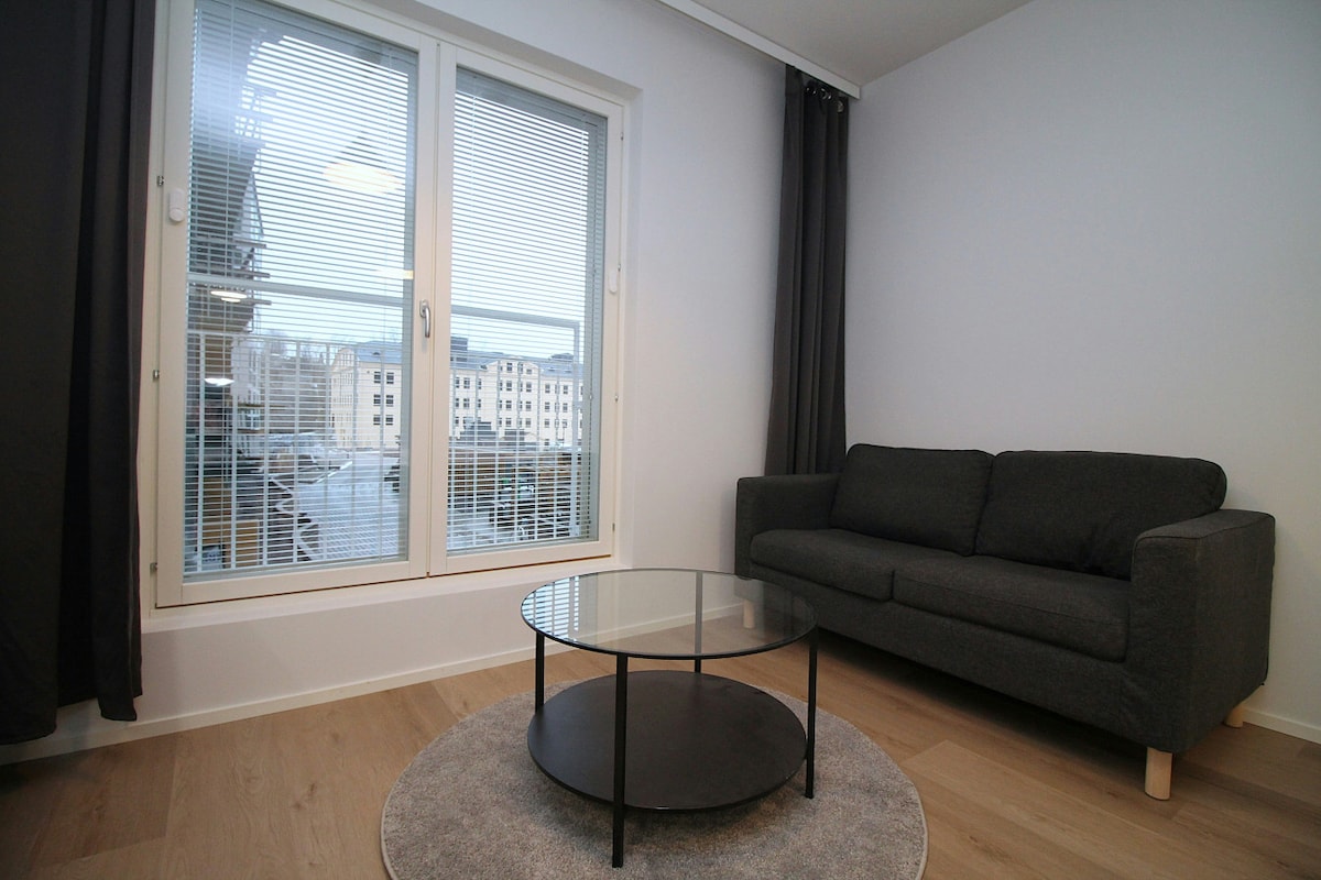 One-bedroom apartment for two guest built in 2018 near Turku city center. The apartment is well-equipped with your everyday appliances such as a refrigerator, stove, microwave, washing machine, dishwasher, coffee maker and various kitchen tools and utensils. The nearest grocery stores and restaurants are only a 7 minute walk away. If you want more selection the city square is only a 3 minute bus ride from the stop nearby. Bed linens are included on your visit. Stay easy.
