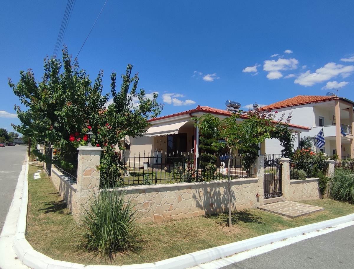 A newly built home, made with care, beautifull with all the amenities to ensure a comfortable stay. Kitchen fully equipted. TV, A/C. Both bedroons have anatomic hypoallergenic mattresses and pillows. A large bathroom with hairdryer and washing machine. Large private terrace with ceilling fan and sun loungers in the yard.Outdoor shower. Only few steps by the sea.Nearby there are taverns, SM, shops, cafes and bars.Thessaloniki airport is about 35km away and only 13km is the Petralona Halidiki Cave