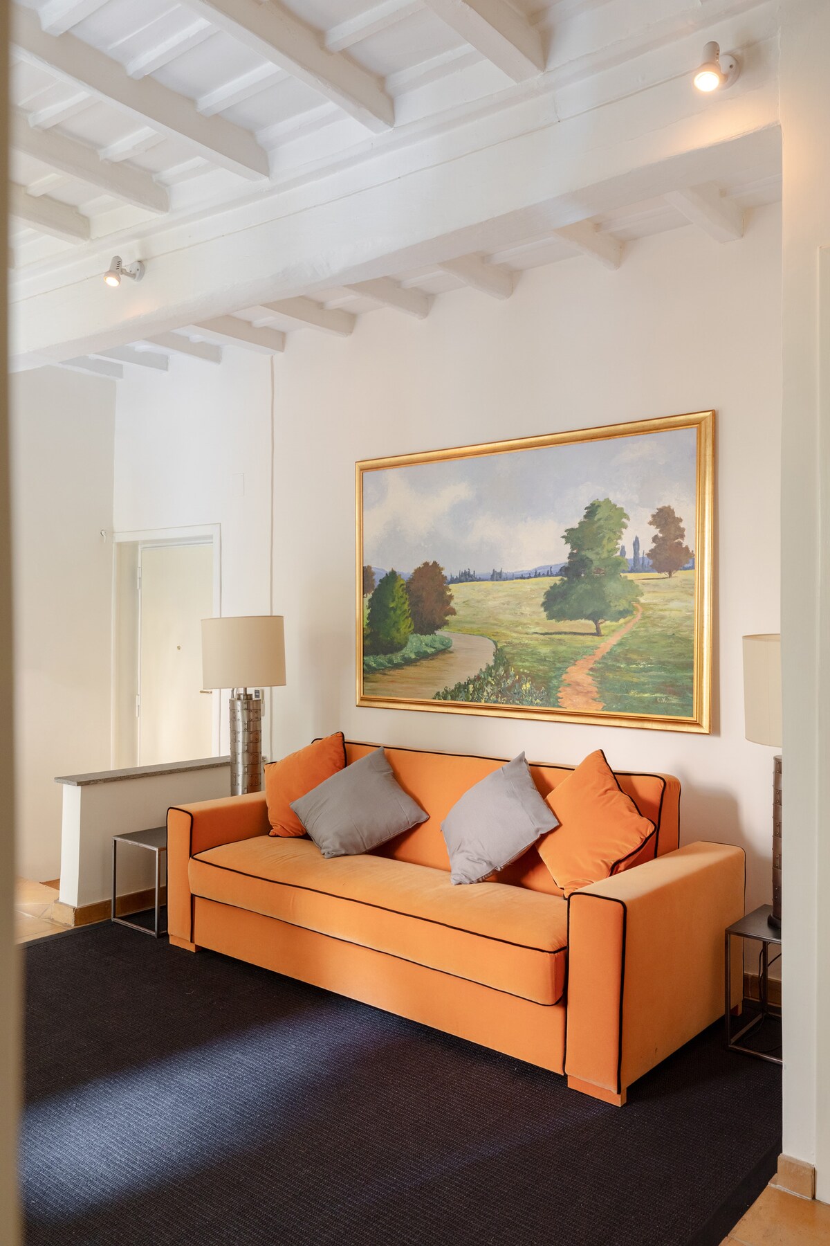 A newly renovated house, in that Trastevere where all the Romans would like to live. Between the church of “Santa Cecilia” and that of “San Francesco a Ripa”. Immersed in history, in a mood of peace and poetry. Let yourself be overwhelmed by the heart of Rome in an apartment where light and the sky reign supreme, where you can enjoy a breathtaking view of the Aventino Hill and with a 2-minute walk, among unforgettable characteristic alleys, you can reach all the attractions.
