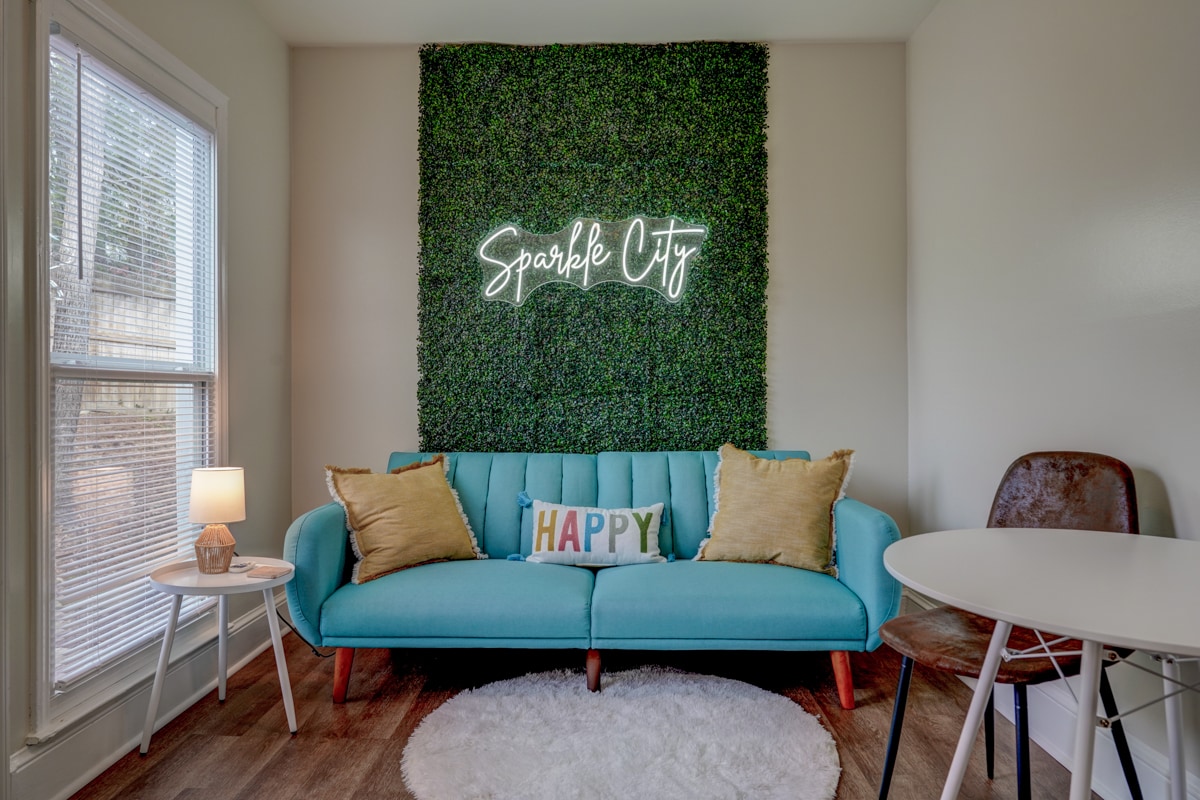 This fully renovated, king-bed guesthouse offers a peaceful, airy stay perfect for parents of college students, couples on a getaway, business travelers, and more. You'll enjoy a full kitchen, stocked coffee bar, spacious bathroom, and stylish living room with RokuTV. Parking is onsite with a private driveway and entrance. This puts you 10-15 minutes from downtown Spartanburg, including Converse, Wofford, and Spartanburg Methodist Colleges, and 20 minutes from USC Upstate.