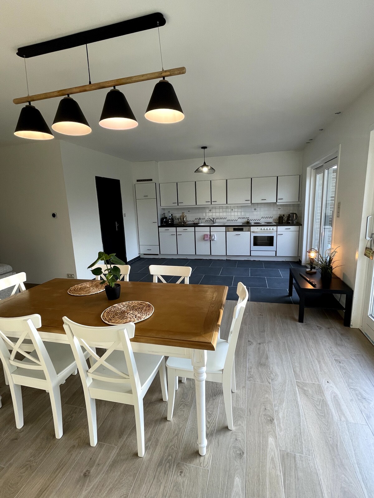 In a quiet area, close to all amenities (shopping mall 1 km away). New 50 m2 apartment on the ground floor of a two-story building with private terrace and 2 private parking spaces. Full south Modern interior: entrance, living room, fully equipped open kitchen, new bathroom Bedroom with dressing room, new bedding 160 x 200. Sheets and towels provided