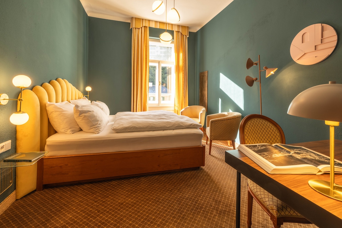 In the historic Hotel Kürschner you will find a spacious and cozy single room with a comfortable bed waiting to welcome you for a relaxing night. The room is equipped with a desk and a comfortable seating area where you can relax. The bathroom is equipped with a spacious shower or bathtub, high-quality toiletries and fluffy towels.