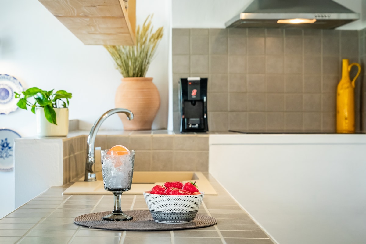 Designed according to the standards of traditional Greek architecture, the StoneHouse is set in a fully private hill among olive and fruit trees as well as colorful flowers. An ideal place to drink a glass of wine as dusk and sunset colors fill the sky, with a breathtaking view of the iconic beach of Agios Dimitrios, the most beautiful beach of the island of Alonnisos. Swim in the "Natura" protected beach, take a hike in a picturesque scenery or just enjoy your privacy and relax..