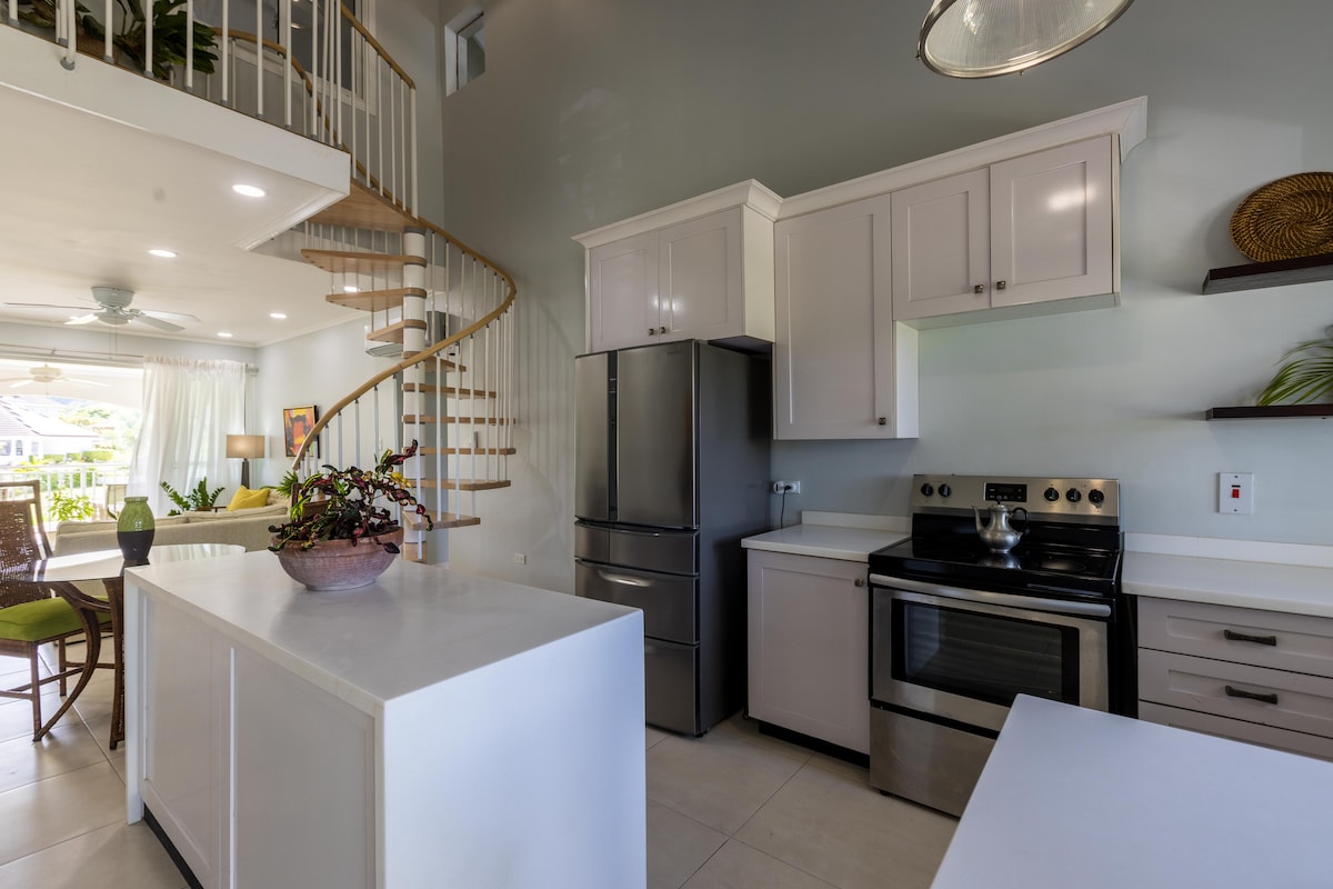 Newly renovated 1 bedroom apartment, designed for a modern lifestyle, Platinum Apt @Sky Castles features an open layout with a calm and inviting decor for the discerning traveler, with high end finishes and all the comforts of home. The apartment boasts contemporary kitchen appliances, SMART TVs and a private porch with a spectacular panoramic view of Ocho Rios, the beach and the Caribbean Sea. The property is near all major attractions and a few minutes walk to beaches, restaurants and stores.