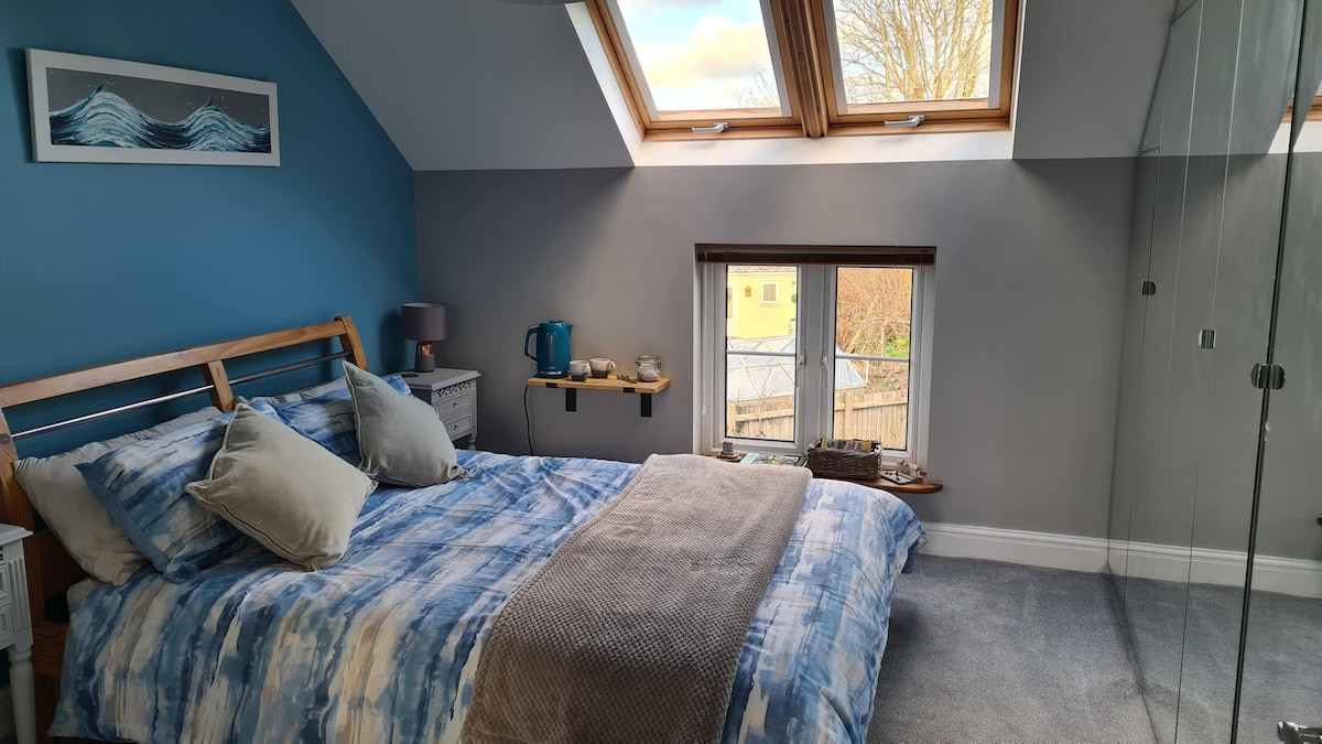 Escape to the country for idyllic views. Set in central Pembrokeshire, sea, sand and mountains are only a stones throw away. With all your home comforts still to hand you can relax and enjoy! Travel a mile up the road to the market town of Narberth to find several cafés, restaurants and boutiques. Wake up on our quirky mezzanine or take a bath with the beautiful view of the Preseli Hills.