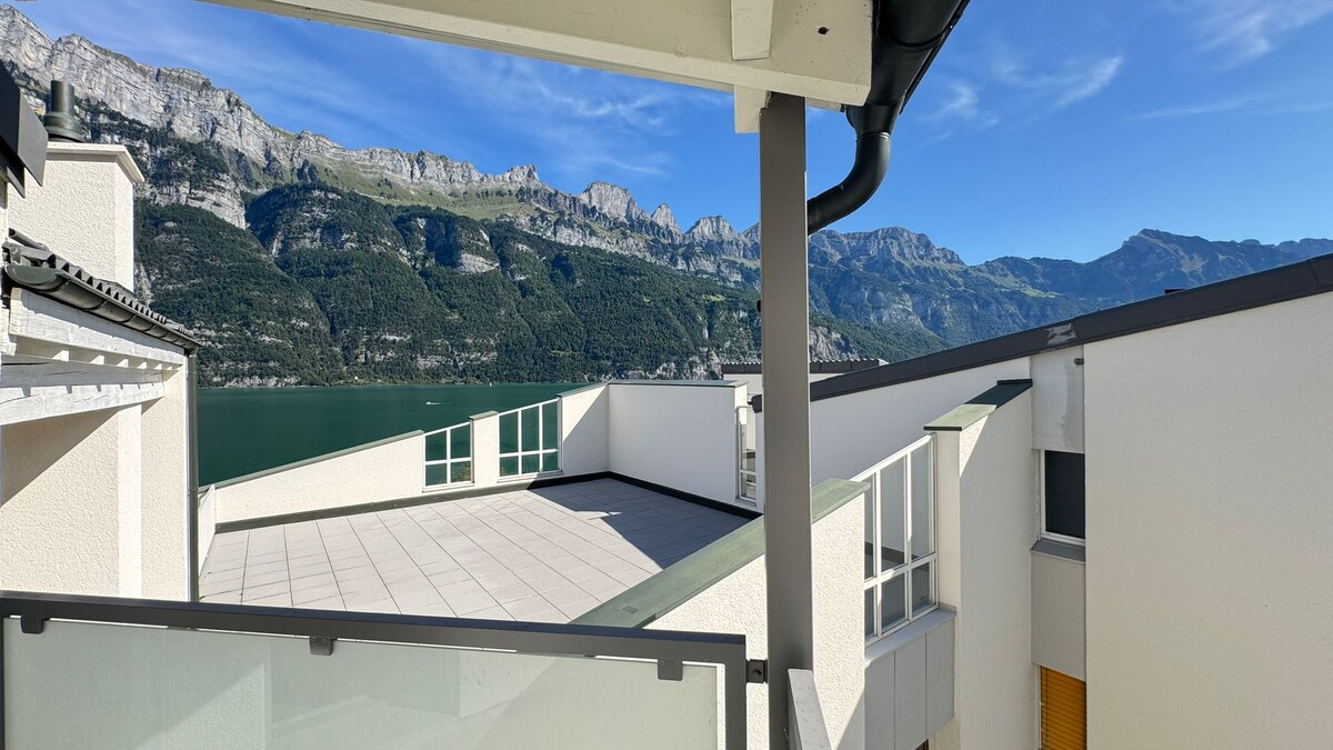 Wellness and panoramic views of mountains and Walensee