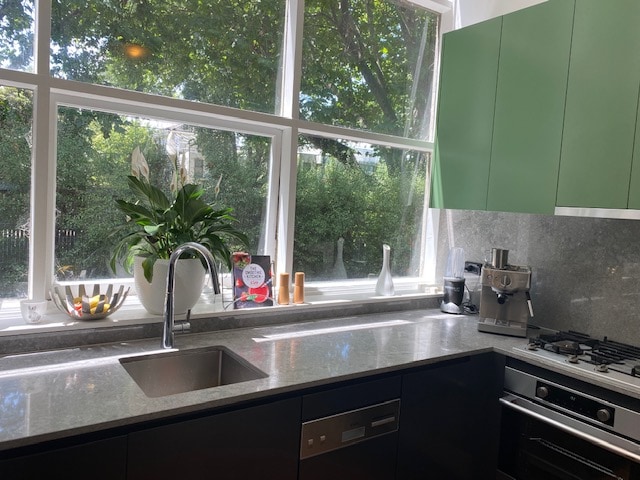 This apartment has been recently renovated in 2021. Located on high street, renowned for fashion, galleries and antique shops and public transport. The apartment is sleek, liveable and maintains total privacy. It is the ideal blend of design and comfort. Perched up looking over high street and the village, this open-plan light filled space is equipped with a hand crafted kitchen, a cosy fireplace and a walk in shower bathroom. Triple glazed windows, sound proof from high street traffic.