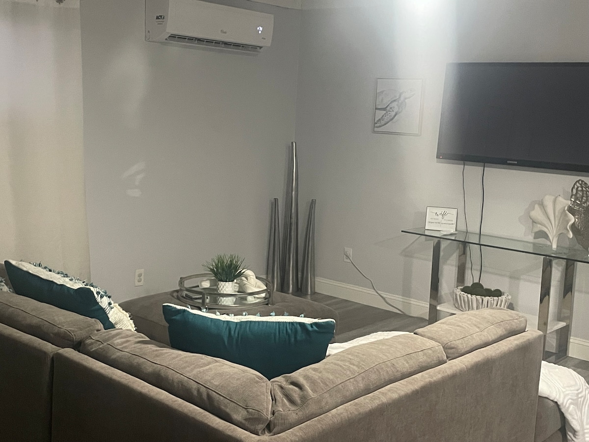 Feel at home in our totally private apartment, in a quiet neighborhood with all you need for a relaxing stay. Relax in the comfort of a spacious King bed and a cozy queen sofa bed providing ample space for additional guests. Newly added washer and dryer inside the unit for a quick wash. With its own private entrance, and safe and free parking you'll enjoy the freedom to come and go as you please. Stay connected with free high-speed WiFi, and smart tvs on the bedroom and the living room.