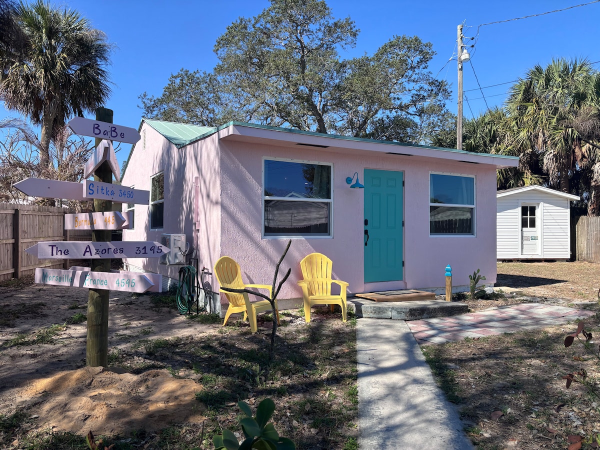 Spring Sun & Sounds - Walk to Jammin' Jensen. A bright pink, cozy, private getaway near downtown Jensen Beach with big vacation energy. This colorful Jensen Beach rental is playful and cozy, with a fully stocked/bright kitchen, private bedroom, and spacious yard. Just a short walk to downtown and a quick 10 minute drive to the beach. Ideal for couples, friends, or small family looking for a unique beach getaway. Parrot Head Paradise Need a space for a small boat or trailer parking? Message host.