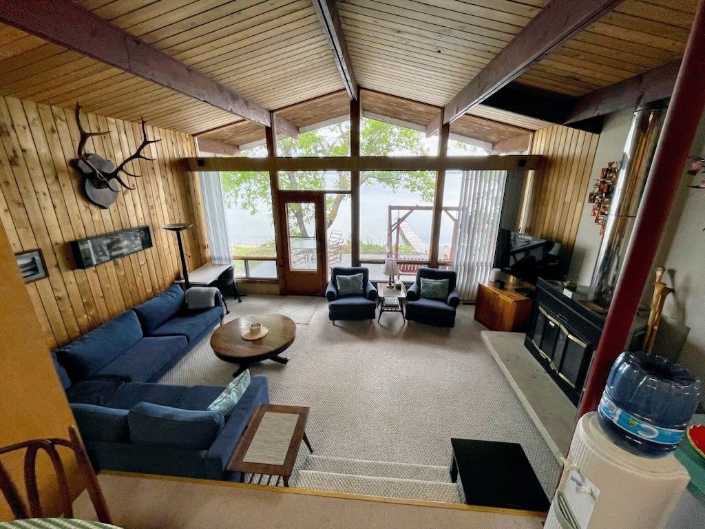 Welcome to the Sage & Cedar Lakehouse A year-round getaway you'll want to return to again and again. Nestled among towering pines in the exclusive Boyne Lake community, this cozy all-season cabin offers a peaceful retreat on the shores of Floating Stone Lake. Whether you're watching the Northern Lights dance overhead, gathering around one of two outdoor firepits, or relaxing on the spacious deck with stunning lake views, the Sage & Cedar Lakehouse offers something special in every season.