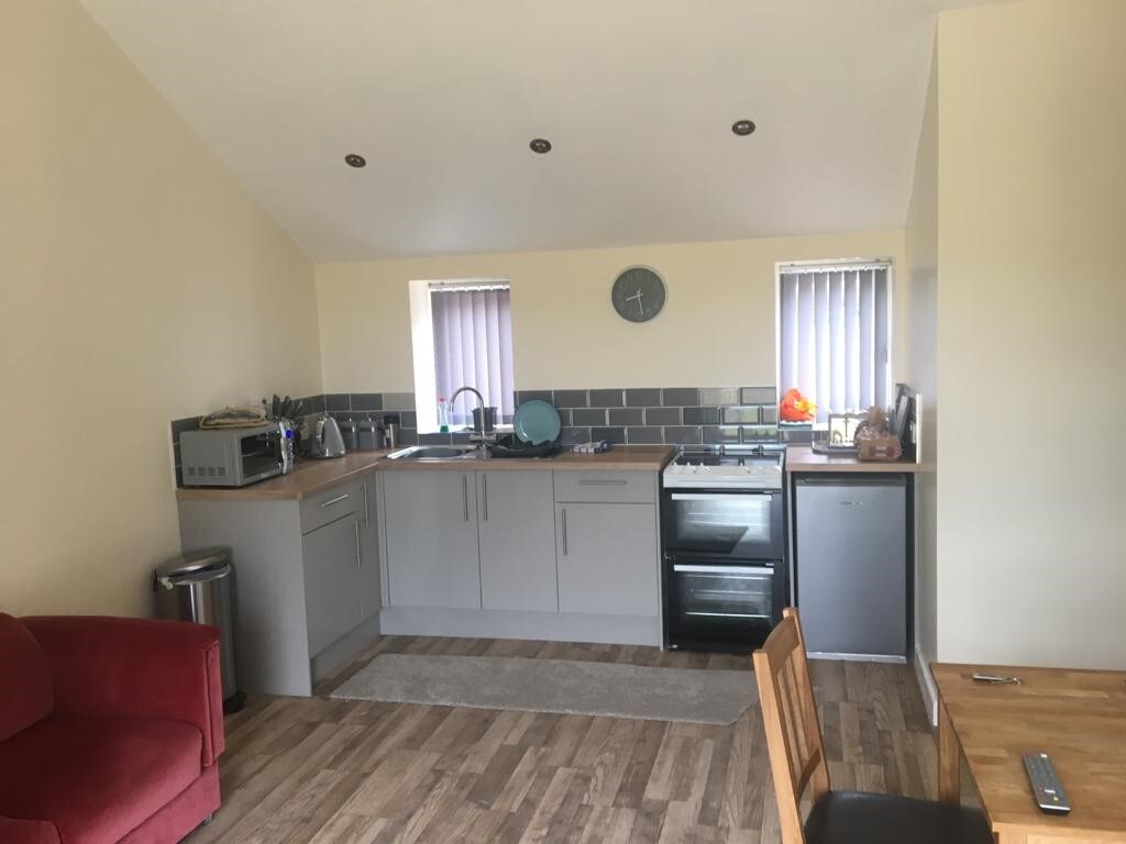 PRIVATE ENTRANCE With outside seating area. Adorable self contained suite. One double bedroom with single beds also providing two comfy chairs and Smart TV. Private en-suite bathroom and separate compact area (kitchenette), for preparing light breakfast with Toaster, microwave,kettle, fridge, freezer and air fryer. Tea and coffee, cereal bread butter provided. Free parking & Wi-Fi. CO-OP Supermarket five minutes walk. Cosy, dog friendly pub/restaurant alongside Coop.