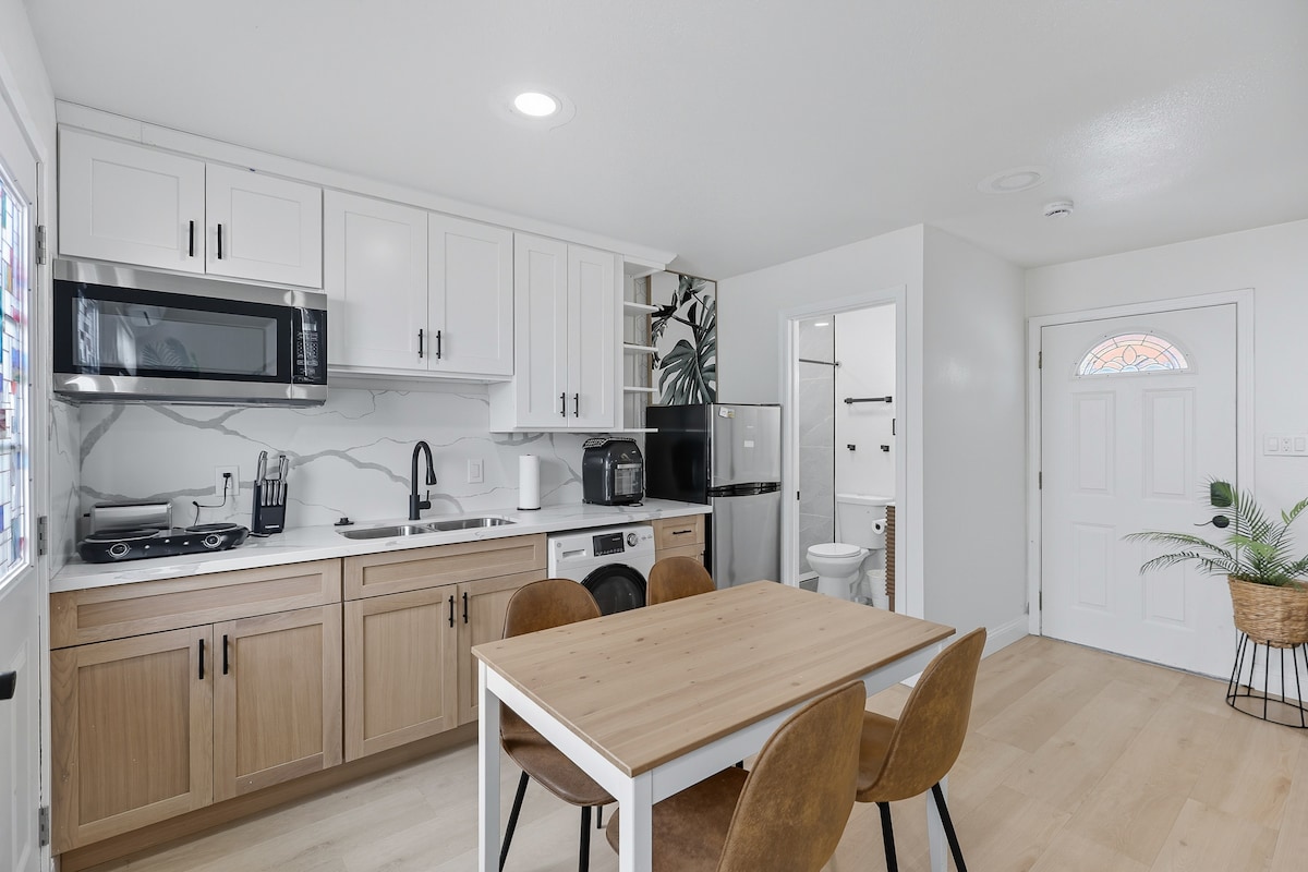 Enjoy cooking a gourmet meal in the full kitchen with stove, microwave or a nice cuppa coffee! Enjoy a movie on Netflix or Amazon prime in the Smart TV we provide! Have to work from home? The dining table can become a work table! We provide a queen bed and a sofa that converts into a queen size for your needs. Needless to say with comfortable linen!
