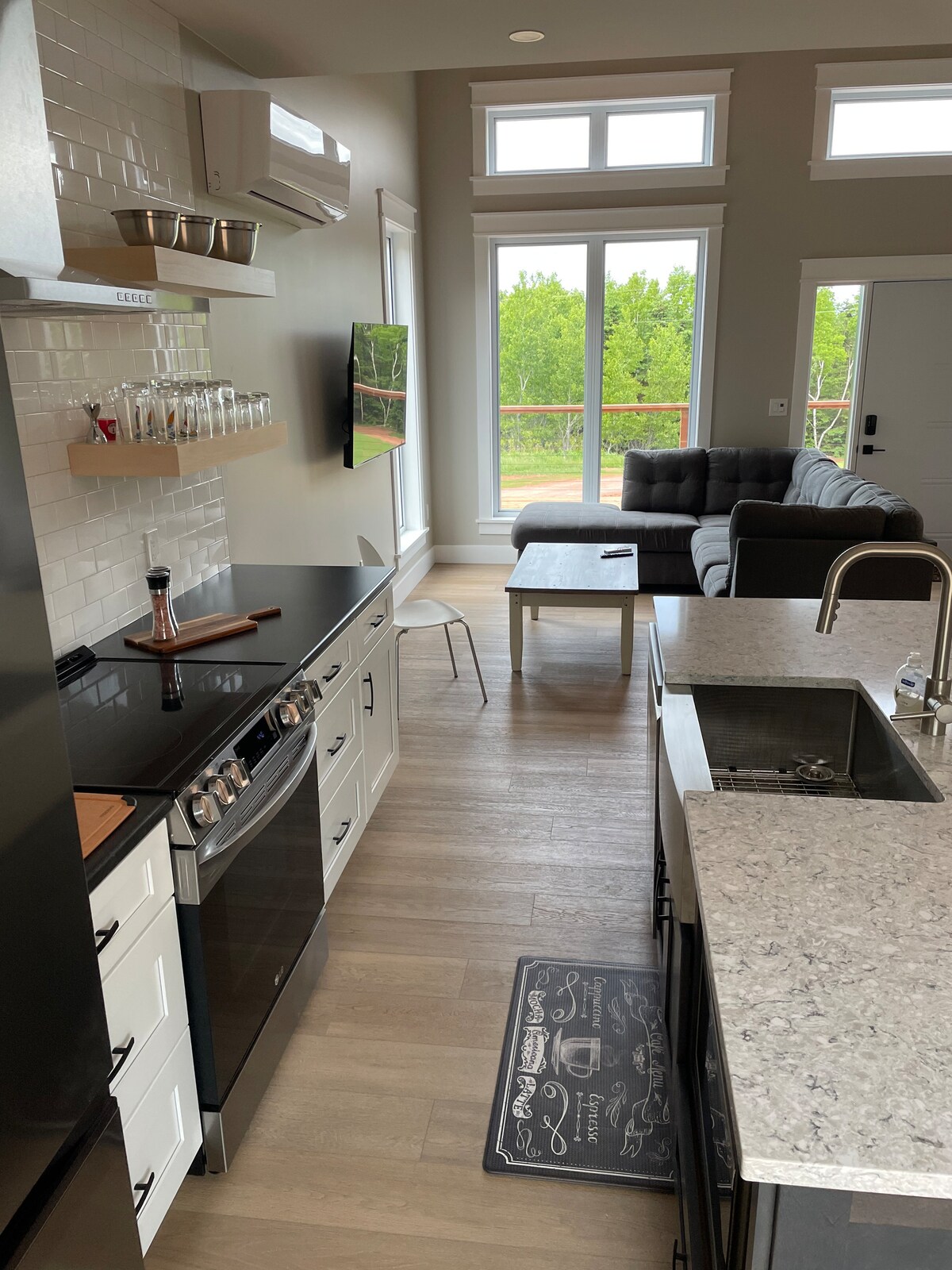 Wecome to our stunning new modern waterfront cottage, nestled in the heart of Prince Edward Island, minutes from Cavendish National Park. This retreat offers the perfect blend of comfort, tranquility and breathtaking views, making it ideal for families and friends looking to escape and unwind. The cottage is in Stanley Bridge, minutes to many PEI golf courses such as Green Gables. The 48 foot patio is a great place to relax. The stairs to the left of the property lead to the red sand shore.